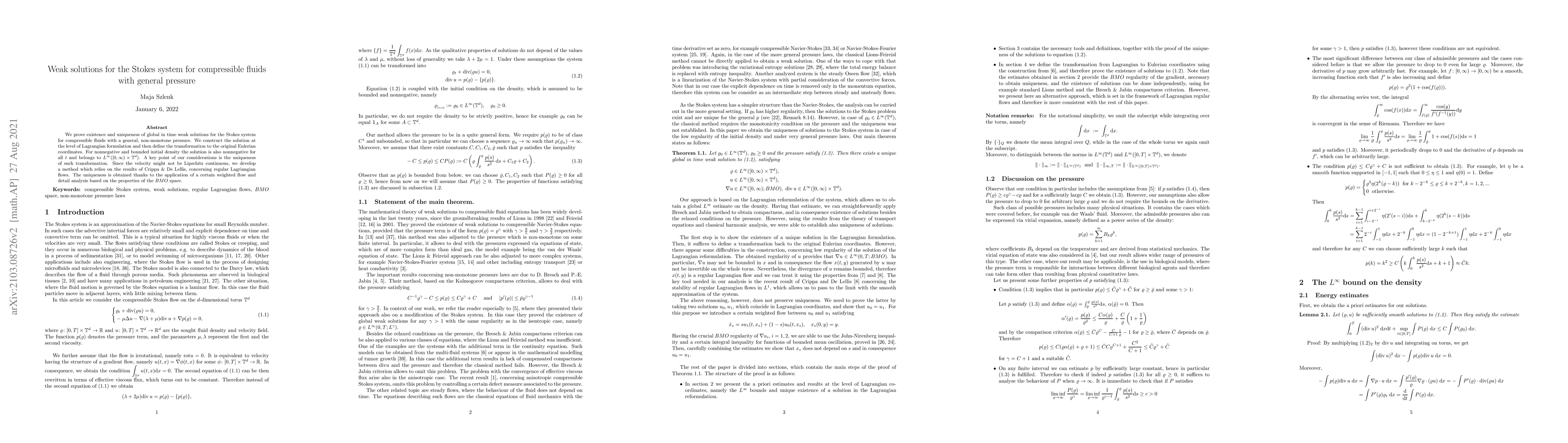 We prove existence and uniqueness of global in time weak solutions for the Stokes system for compressible fluids with a general, non-monotone pressure. We construct the solution at the level of Lagrangian formulation and then define the transformation to the original Eulerian coordinates. For nonnegative and bounded initial density the solution is also nonnegative for all $t$ and belongs to $L^\infty([0,\infty)\times\mathbb{T}^d)$. A key point of our considerations is the uniqueness of such transformation. Since the velocity might not be Lipschitz continuous, we develop a method which relies on the results of Crippa \& De Lellis, concerning regular Lagriangian flows. The uniqueness is obtained thanks to the application of a certain weighted flow and detail analysis based on the properties of the $BMO$ space.