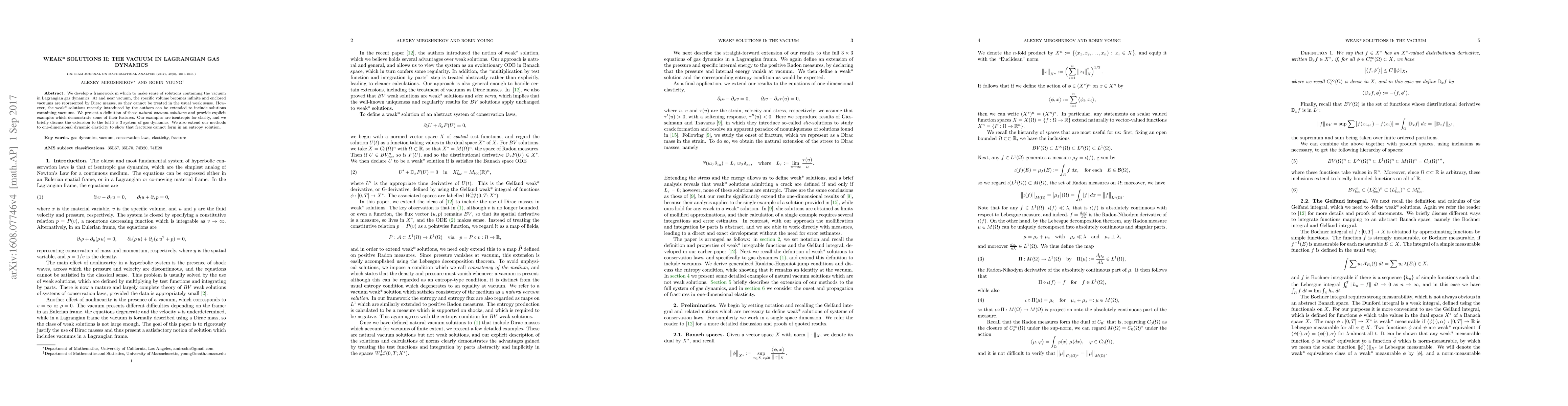 We develop a framework in which to make sense of solutions containing the vacuum in Lagrangian gas dynamics. At and near vacuum, the specific volume becomes infinite and enclosed vacuums are represented by Dirac masses, so they cannot be treated in the usual weak sense. However, the weak* solutions recently introduced by the authors can be extended to include solutions containing vacuums. We present a definition of these natural vacuum solutions and provide explicit examples which demonstrate some of their features. Our examples are isentropic for clarity, and we briefly discuss the extension to the full $3\times3$ system of gas dynamics. We also extend our methods to one-dimensional dynamic elasticity to show that fractures cannot form in an entropy solution.
