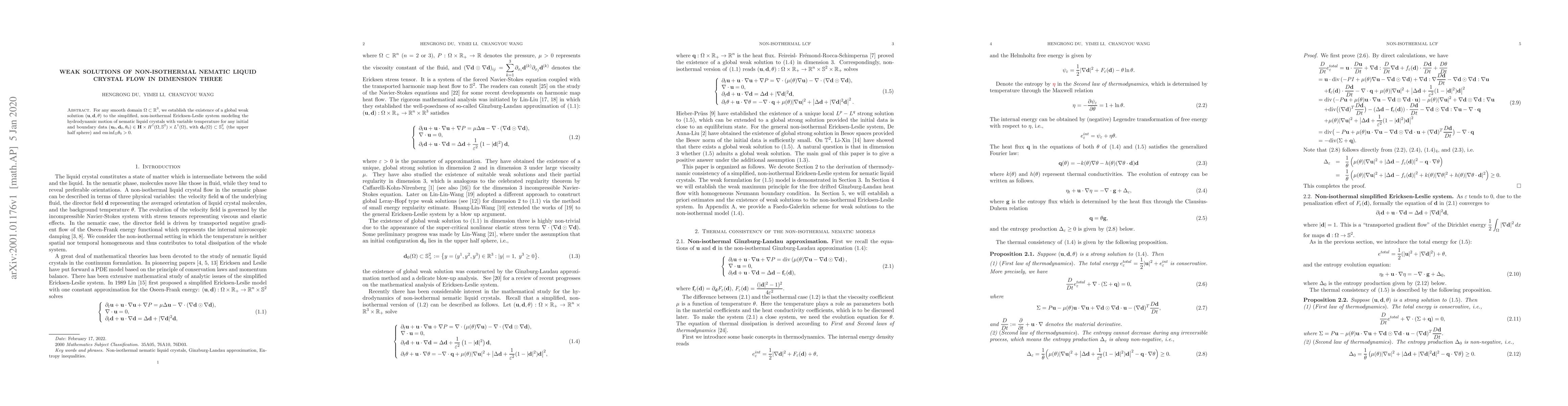 Researchers prove the existence of global weak solutions for non-isothermal nematic liquid crystal flow in 3D space, regardless of initial and boundary conditions. This breakthrough enables modeling of complex fluid dynamics in liquid crystals with temperature variations.