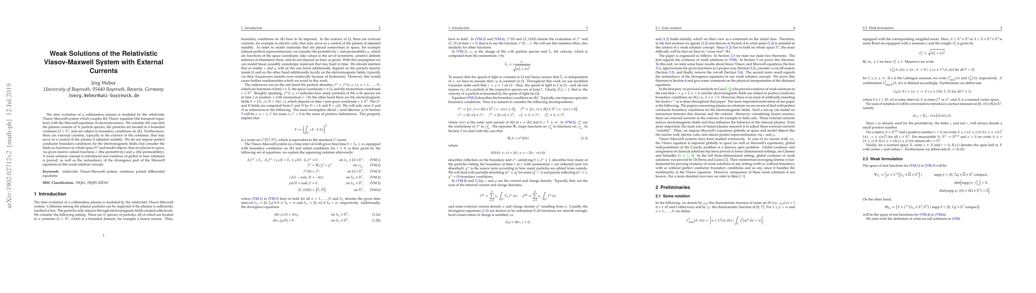 Researchers have developed a weak solution concept for the relativistic Vlasov-Maxwell system with external currents, proving global in time solutions and showing that the divergence part of Maxwell's equations is redundant in this framework.