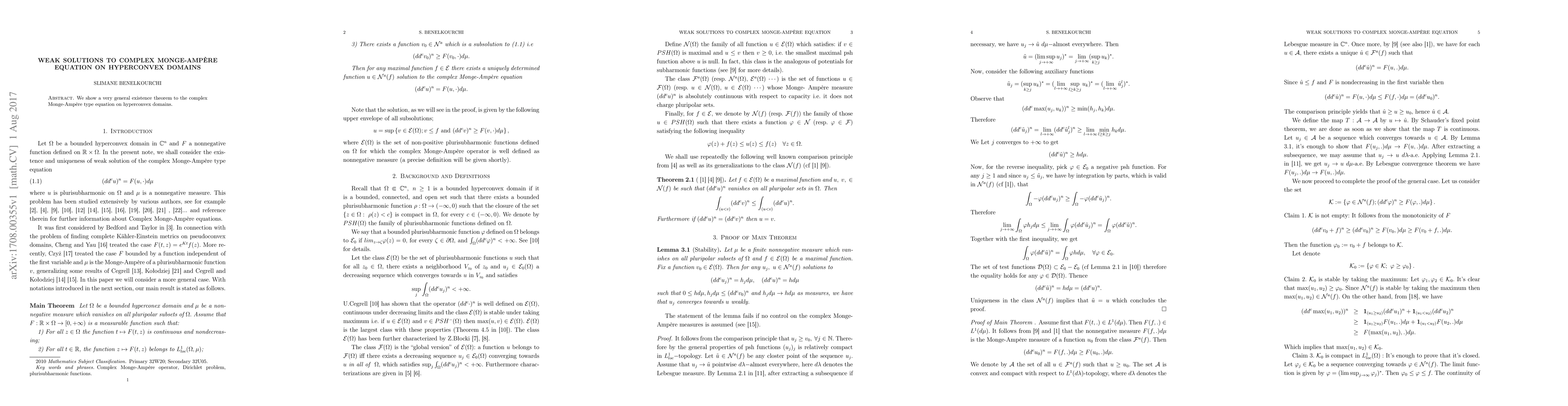 Summary: This paper establishes a general existence theorem for weak solutions to the complex Monge-Ampère equation within the context of hyperconvex domains. The results extend the applicability of the theorem to a broad class of complex domains.