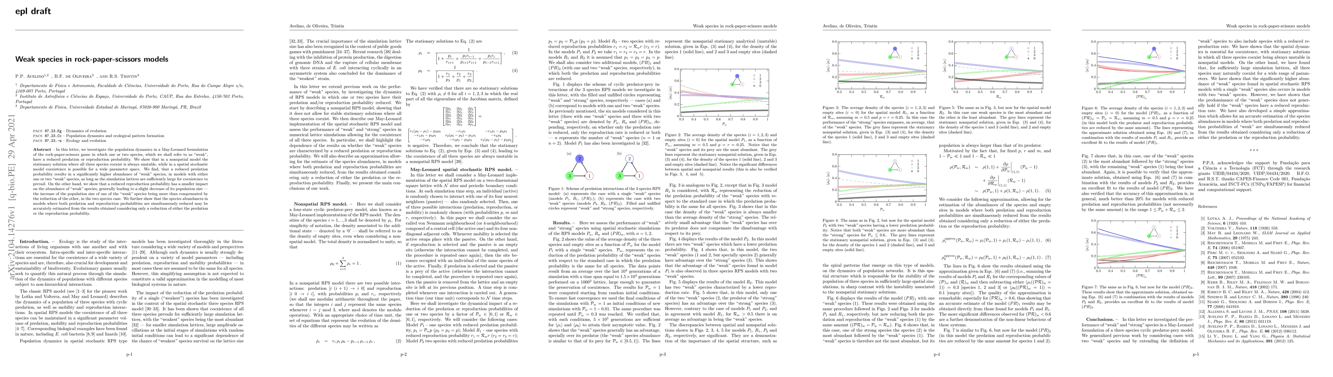 This paper examines the population dynamics in a rock-paper-scissors game with weak species having reduced predation or reproduction probabilities. It shows that while coexistence in nonspatial models is unstable, spatial stochastic models can support coexistence over a wide parameter space. Reduced predation probabilities significantly increase the abundance of weak species, whereas reduced reproduction probabilities generally lead to a slight decrease in their population size.