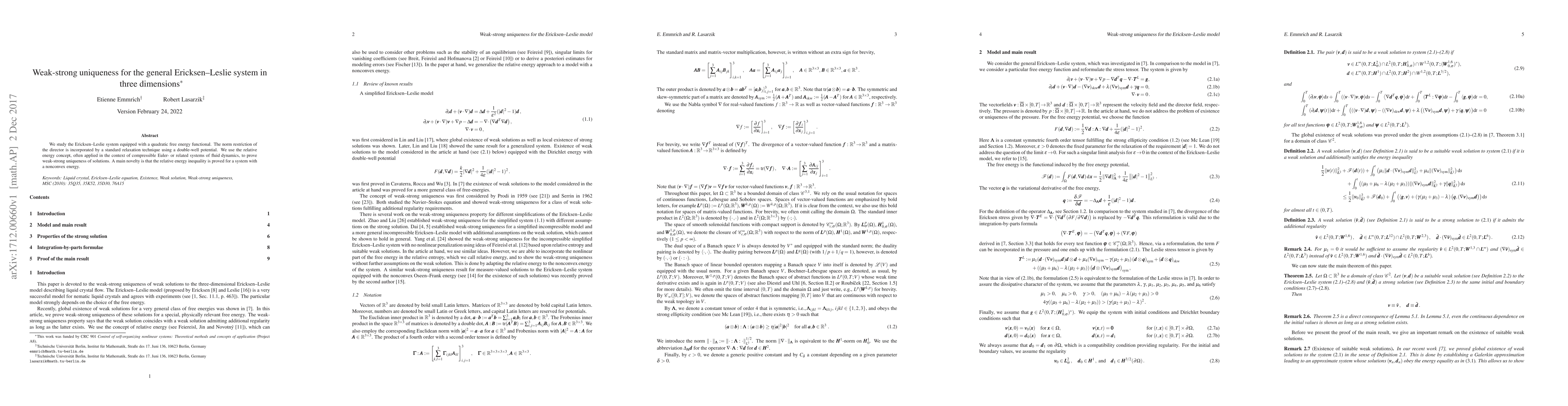 This paper proves weak-strong uniqueness for the Ericksen-Leslie system with a quadratic free energy and a double-well potential for the director norm restriction. The novel use of relative energy, typically from fluid dynamics, is applied to demonstrate this uniqueness for a nonconvex energy system.