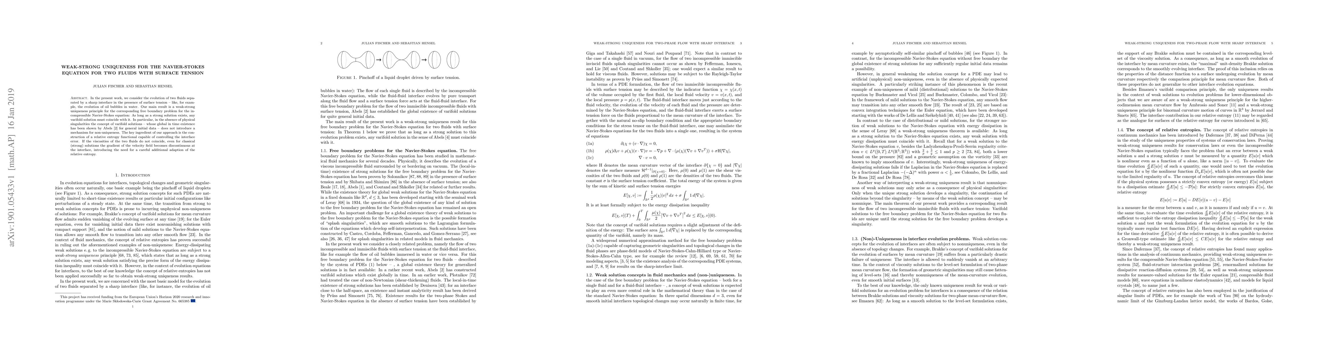Researchers prove that for two fluids with surface tension, if a strong solution exists, any varifold solution must coincide with it, eliminating non-uniqueness in the Navier-Stokes equation.