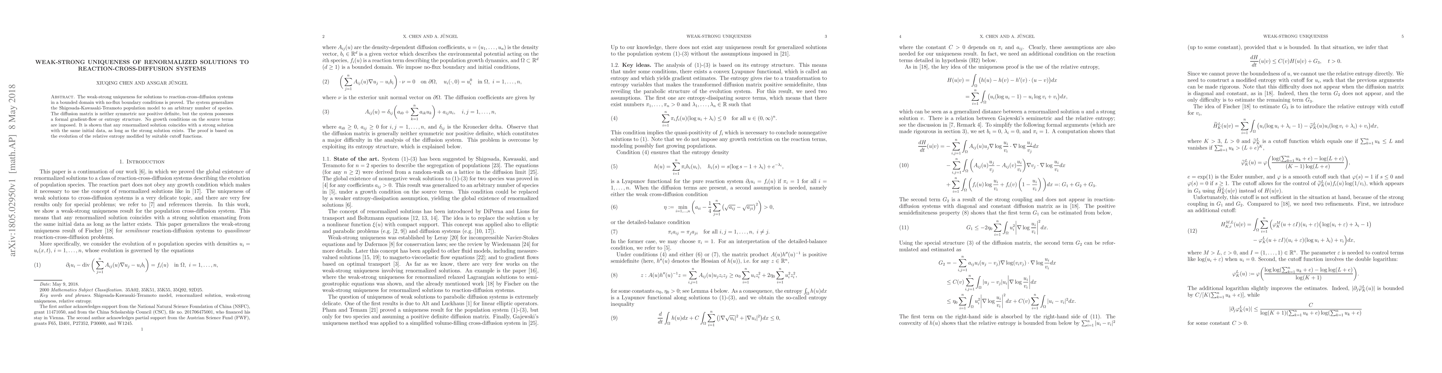 The paper develops a novel approach to prove weak-strong uniqueness for reaction-cross-diffusion systems using relative entropy and cutoff functions, extending previous results to a more general setting.