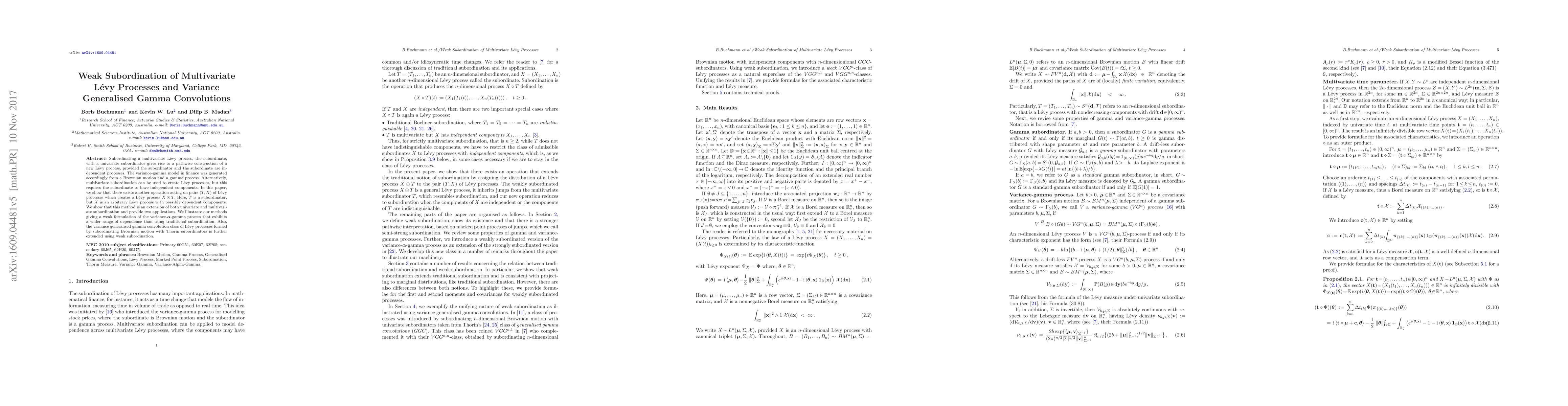 Subordinating a multivariate L\'evy process, the subordinate, with a univariate subordinator gives rise to a pathwise construction of a new L\'evy process, provided the subordinator and the subordinate are independent processes. The variance-gamma model in finance was generated accordingly from a Brownian motion and a gamma process. Alternatively, multivariate subordination can be used to create L\'evy processes, but this requires the subordinate to have independent components. In this paper, we show that there exists another operation acting on pairs $(T,X)$ of L\'evy processes which creates a L\'evy process $X\odot T$. Here, $T$ is a subordinator, but $X$ is an arbitrary L\'evy process with possibly dependent components. We show that this method is an extension of both univariate and multivariate subordination and provide two applications. We illustrate our methods giving a weak formulation of the variance-$\alpha$-gamma process that exhibits a wider range of dependence than using traditional subordination. Also, the variance generalised gamma convolution class of L\'evy processes formed by subordinating Brownian motion with Thorin subordinators is further extended using weak subordination.