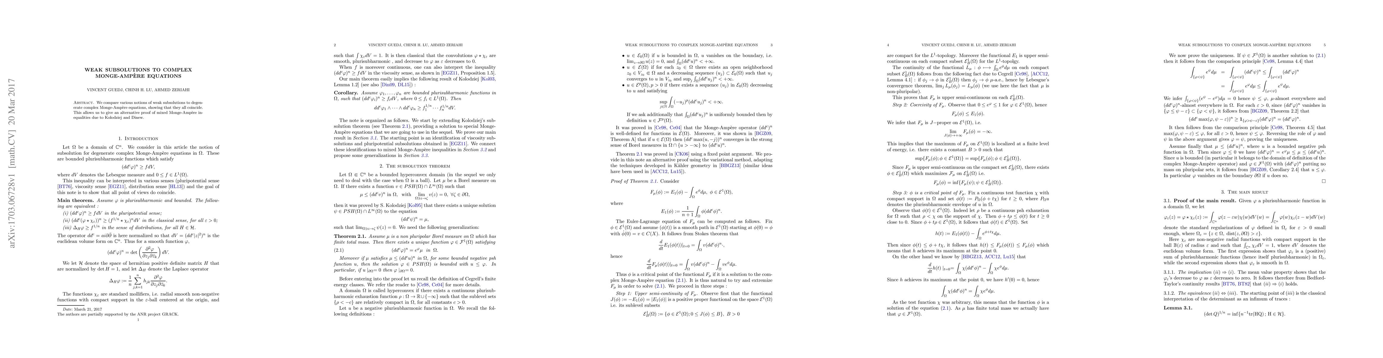This paper demonstrates that different definitions of weak subsolutions to complex Monge-Ampère equations are equivalent, leading to an alternative proof of mixed Monge-Ampère inequalities previously established by Kolodziej and Dinew.