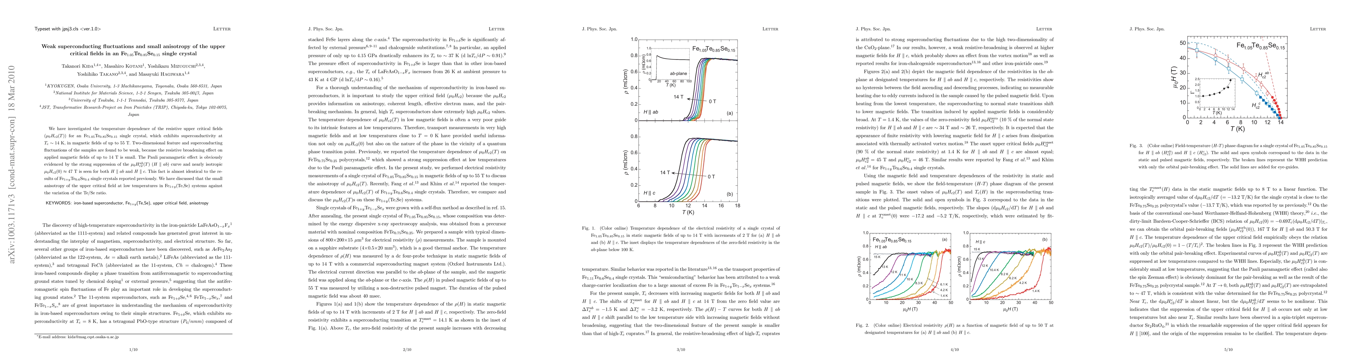 This study investigates the resistive upper critical fields in an Fe$_{1.05}$Te$_{0.85}$Se$_{0.15}$ single crystal, revealing weak superconducting fluctuations and small anisotropy in the upper critical fields. The Pauli paramagnetic effect is evident, with nearly isotropic behavior observed for both in-plane and out-of-plane fields.