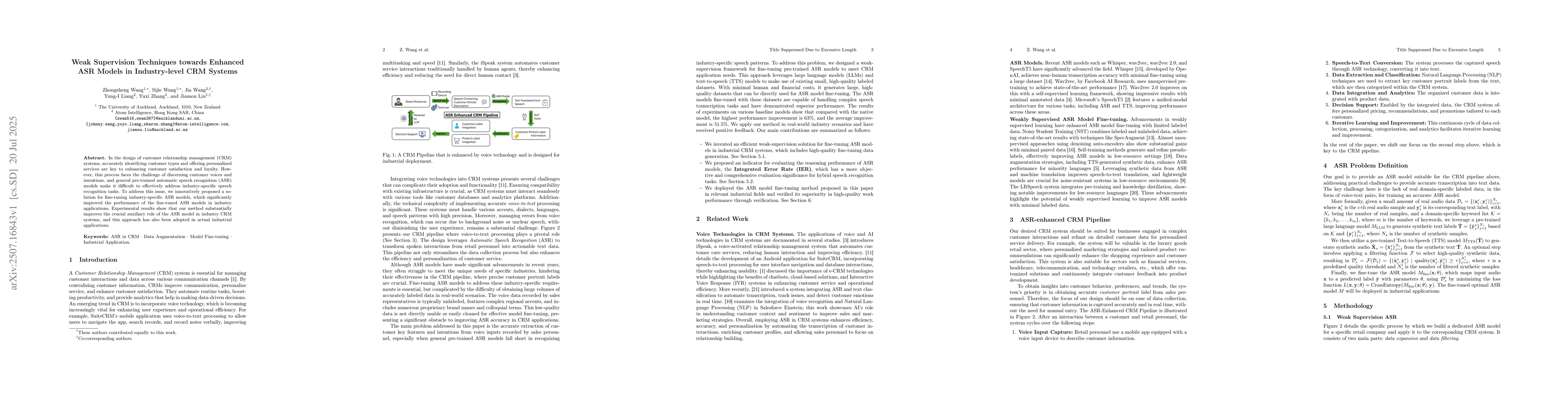 In the design of customer relationship management (CRM) systems, accurately identifying customer types and offering personalized services are key to enhancing customer satisfaction and loyalty. However, this process faces the challenge of discerning customer voices and intentions, and general pre-trained automatic speech recognition (ASR) models make it difficult to effectively address industry-specific speech recognition tasks. To address this issue, we innovatively proposed a solution for fine-tuning industry-specific ASR models, which significantly improved the performance of the fine-tuned ASR models in industry applications. Experimental results show that our method substantially improves the crucial auxiliary role of the ASR model in industry CRM systems, and this approach has also been adopted in actual industrial applications.