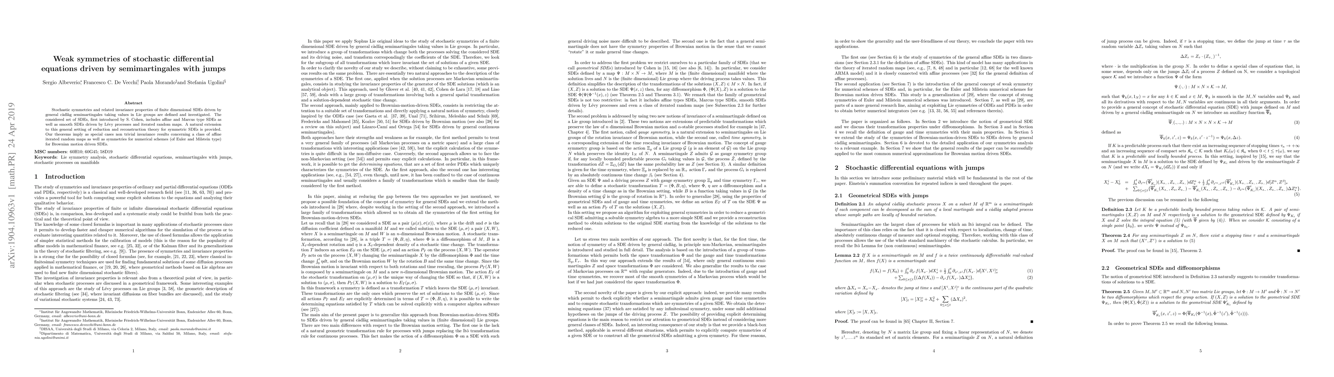 This research paper investigates symmetries of stochastic differential equations driven by semimartingales with jumps, providing new results on invariance properties for a range of SDE models, including affine and smooth SDEs, with implications for numerical schemes.