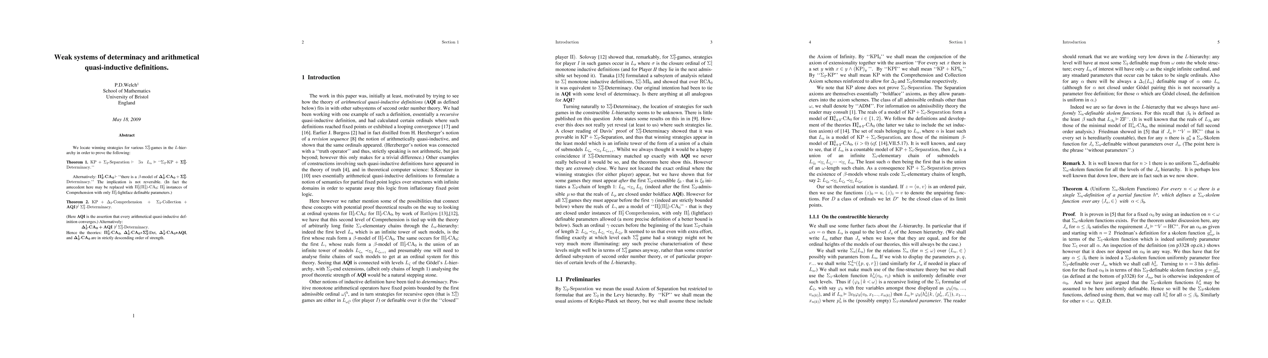 The result relies on understanding arithmetical quasi-inductive definitions and their relation to determinacy, with implications for computability theory and second-order number theory.