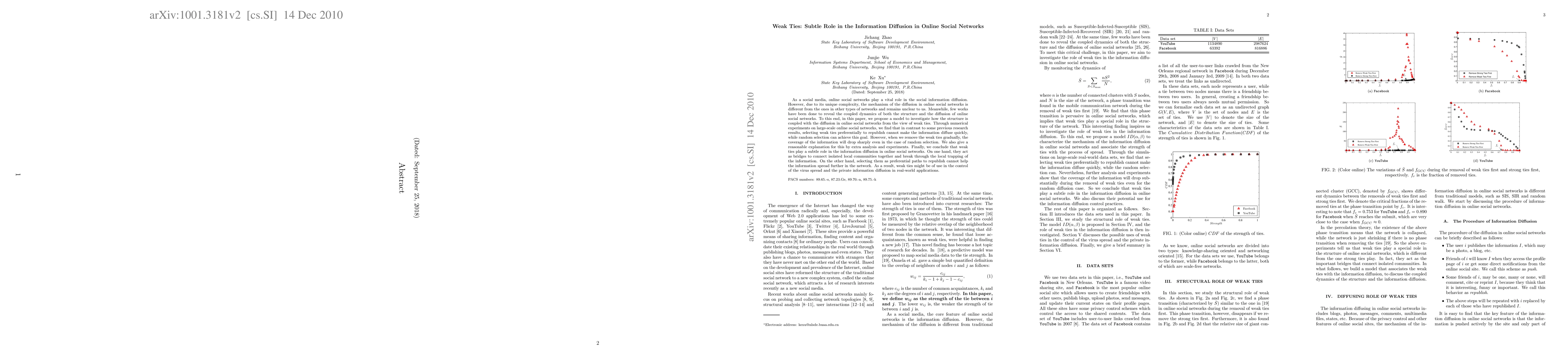 This paper proposes a model to explore how network structure influences information diffusion in online social networks, particularly focusing on the role of weak ties. The findings reveal that while weak ties are crucial bridges connecting isolated communities, they do not accelerate information spread compared to random selection; instead, their gradual removal significantly reduces information coverage. Thus, weak ties subtly facilitate information diffusion but are not effective for rapid dissemination.