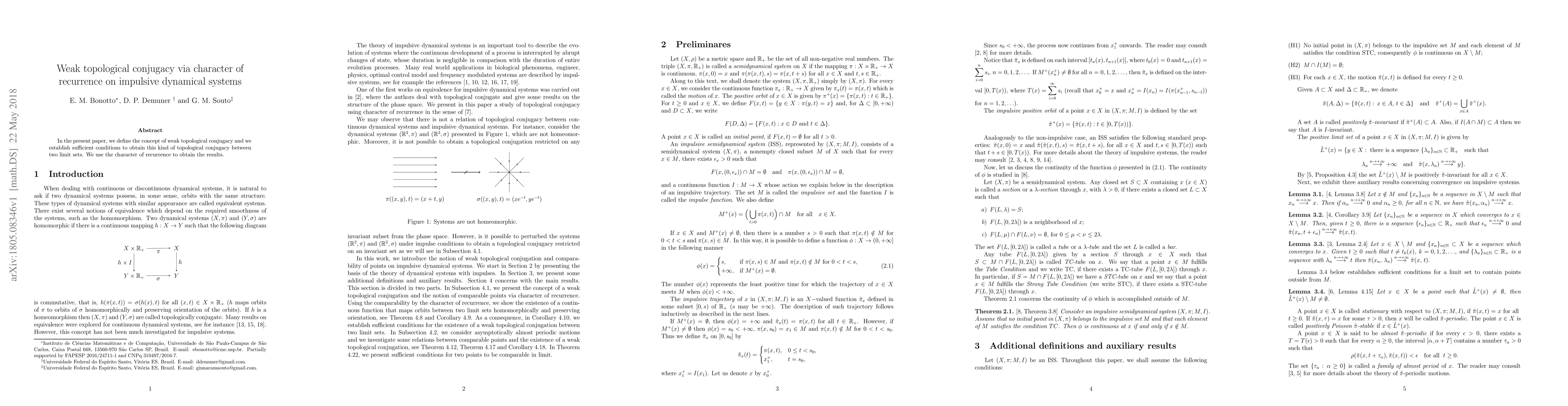 This paper introduces the concept of weak topological conjugacy and provides sufficient conditions for its existence between two limit sets of impulsive dynamical systems, leveraging the character of recurrence to achieve these results.