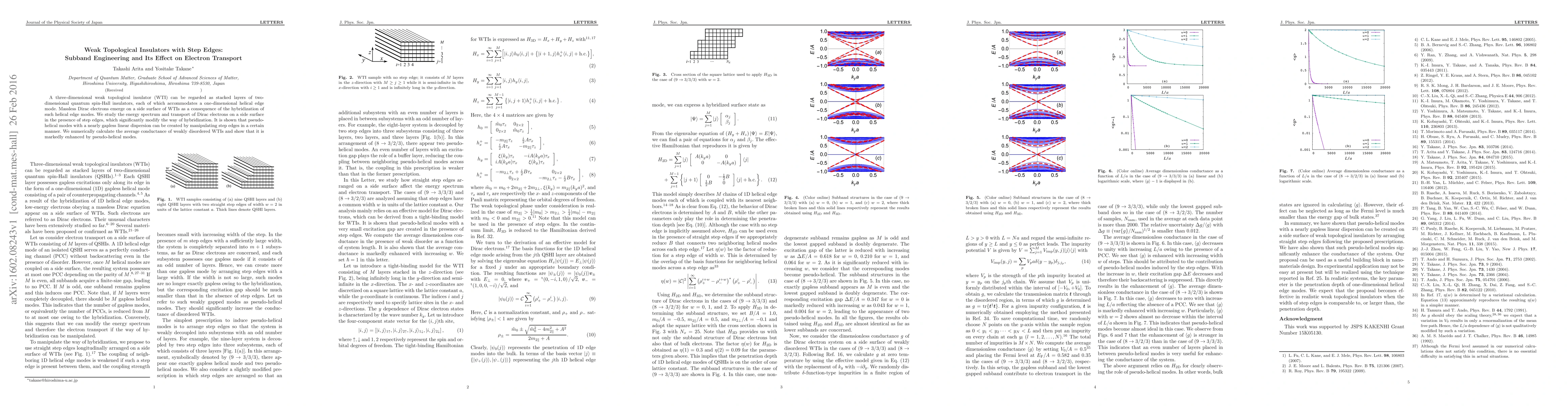 This paper investigates the electron transport in three-dimensional weak topological insulators (WTIs) with step edges, demonstrating how step edges can create pseudo-helical modes with nearly gapless linear dispersion. The study finds that these engineered modes significantly enhance the average conductance of weakly disordered WTIs.