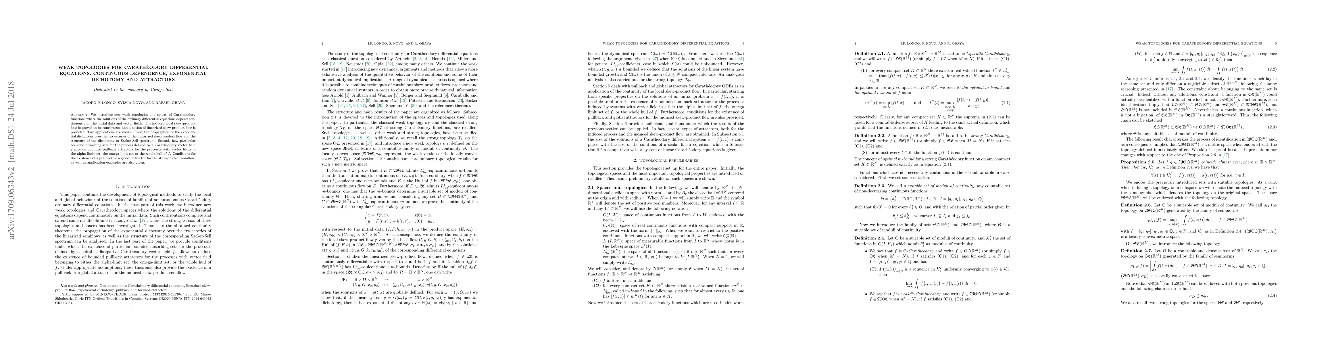 This paper introduces new topologies for Carath{e}odory differential equations to study their behavior, including continuous dependence on initial data and the existence of attractors.