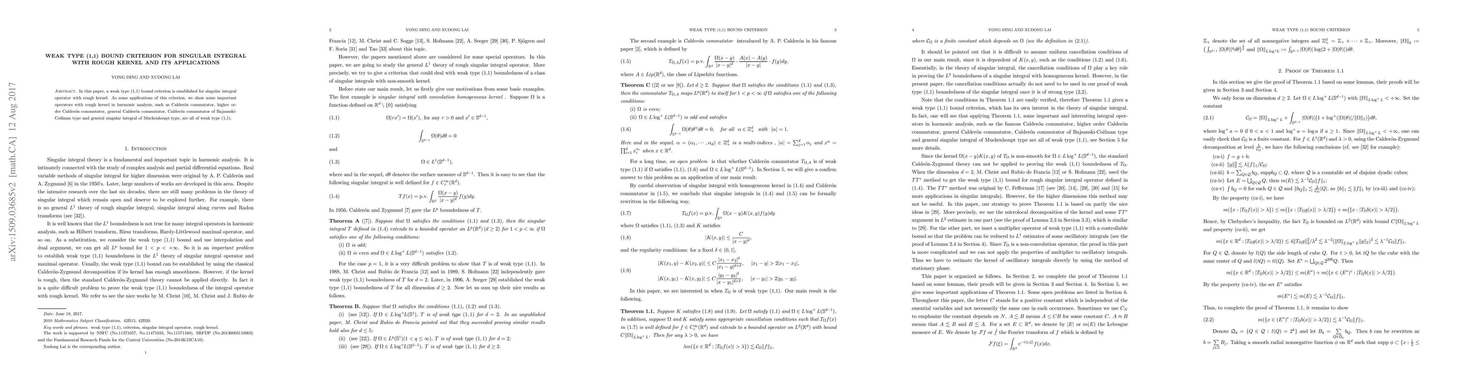 This paper establishes a weak type (1,1) bound criterion for singular integral operators with rough kernels and applies it to demonstrate that several important operators in harmonic analysis, including Calderón commutators and general singular integrals, satisfy this weak type (1,1) bound.