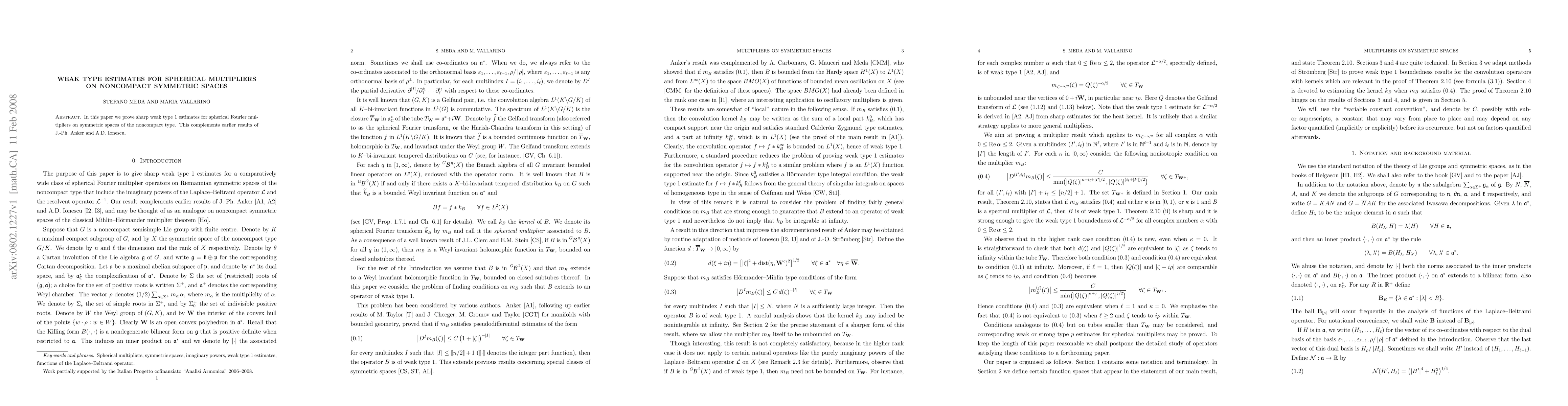 Summary: This paper establishes sharp weak type 1 estimates for spherical Fourier multipliers on noncompact symmetric spaces, enhancing previous findings by J.-Ph. Anker and A.D. Ionescu. The results provide deeper insights into the behavior of these multipliers in noncompact settings.