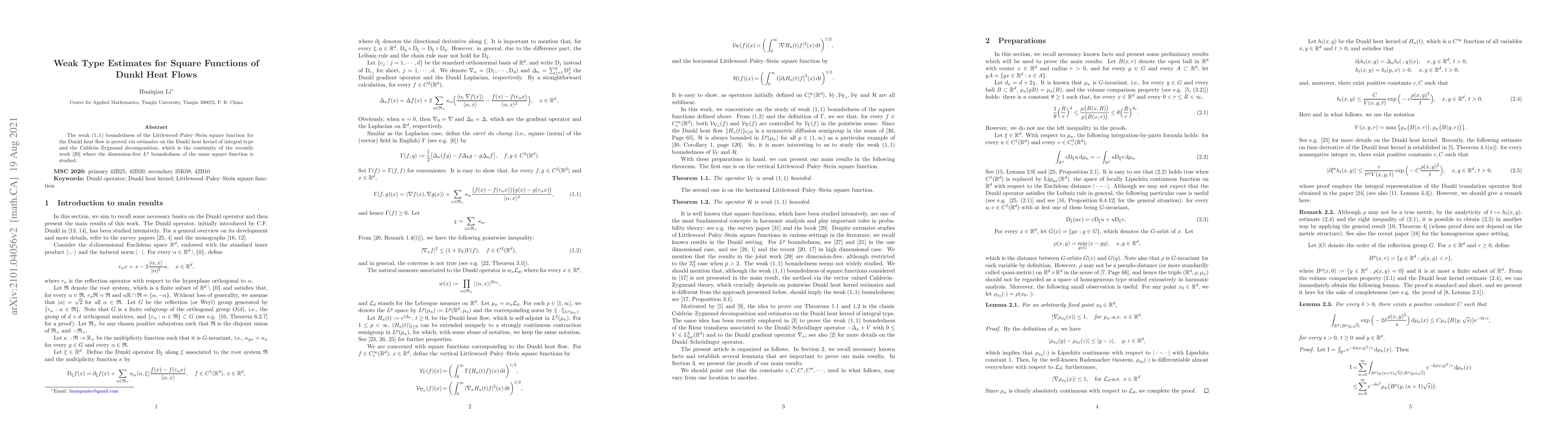 This paper proves the weak $(1,1)$ boundedness of the Littlewood-Paley-Stein square function for the Dunkl heat flow using integral type estimates on the Dunkl heat kernel and Calderón-Zygmund decomposition, building on the dimension-free $L^p$ boundedness results from a recent study.