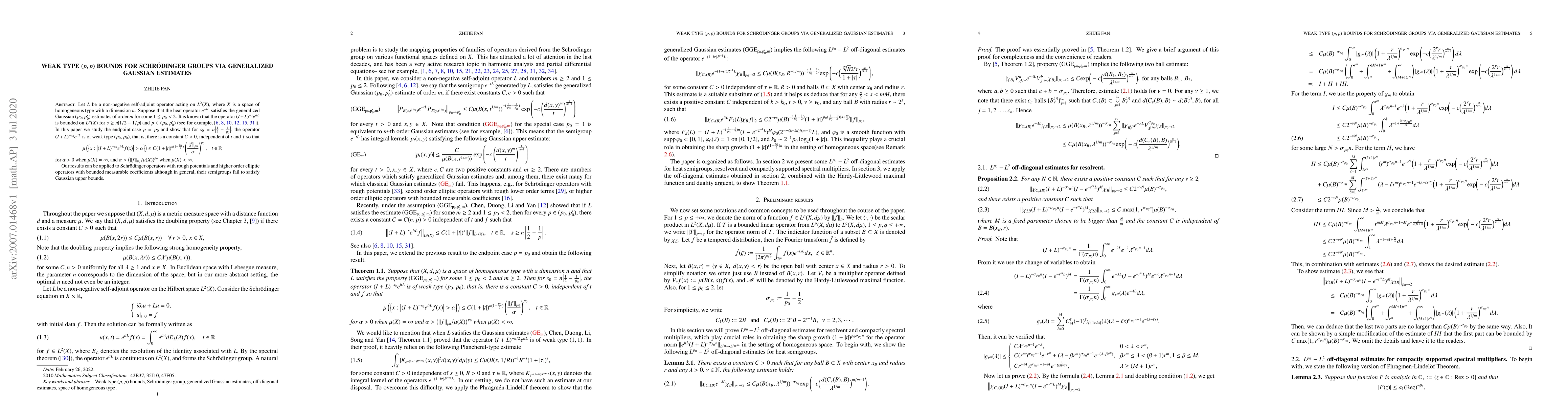 Let $L$ be a non-negative self-adjoint operator acting on $L^2(X)$, where $X$ is a space of homogeneous type with a dimension $n$. Suppose that the heat operator $e^{-tL}$ satisfies the generalized Gaussian $(p_0, p'_0)$-estimates of order $m$ for some $1\leq p_0 < 2$. It is known that the operator $(I+L)^{-s } e^{itL}$ is bounded on $L^p(X)$ for $s\geq n|{1/ 2}-{1/p}| $ and $ p\in (p_0, p_0')$ (see for example, \cite{Blunck2, BDN, CCO, CDLY, DN, Mi1}). In this paper we study the endpoint case $p=p_0$ and show that for $s_0= n\big|{1\over 2}-{1\over p_0}\big|$, the operator $(I+L)^{-{s_0}}e^{itL} $ is of weak type $(p_{0},p_{0})$, that is, there is a constant $C>0$, independent of $t$ and $f$ so that \begin{eqnarray*} \mu\left(\left\{x: \big|(I+L)^{-s_0}e^{itL} f(x)\big|>\alpha \right\} \right)\leq C (1+|t|)^{n(1 - {p_0\over 2}) } \left( {\|f\|_{p_0} \over \alpha} \right)^{p_0} , \ \ \ t\in{\mathbb R} \end{eqnarray*} for $\alpha>0$ when $\mu(X)=\infty$, and $\alpha>\big(\|f\|_{p_{0}}/\mu(X) \big)^{p_{0}}$ when $\mu(X)<\infty$. Our results can be applied to Schr\"odinger operators with rough potentials and %second order elliptic operators with rough lower order terms, or higher order elliptic operators with bounded measurable coefficients although in general, their semigroups fail to satisfy Gaussian upper bounds.