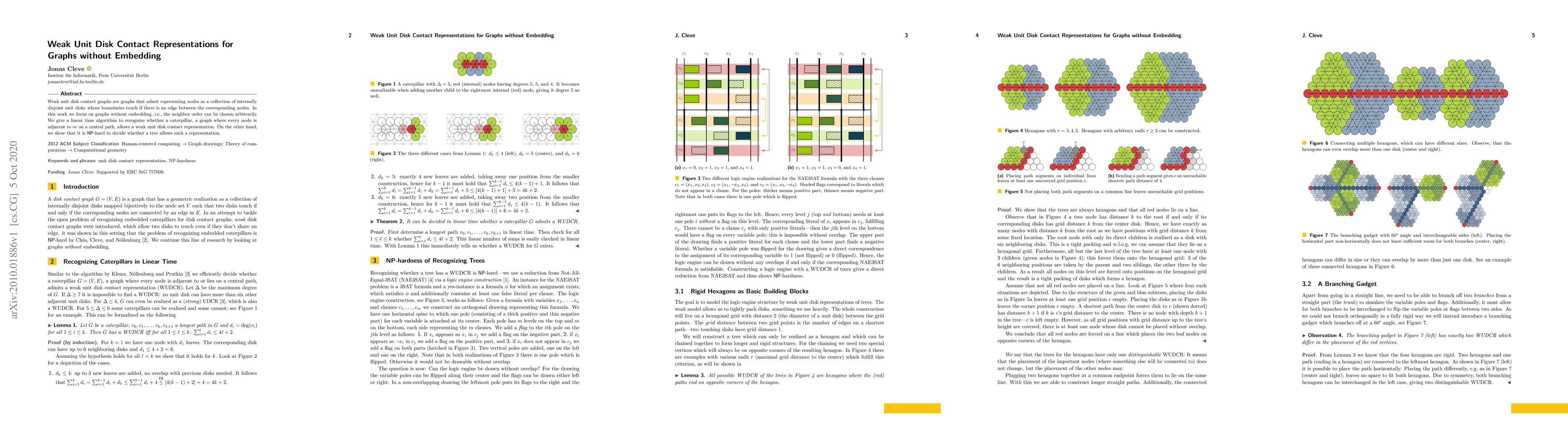 This paper presents a linear time algorithm to determine if a caterpillar graph can be represented using weak unit disk contact representations without a fixed embedding order. It also proves that deciding if a tree can be represented in this manner is NP-hard.