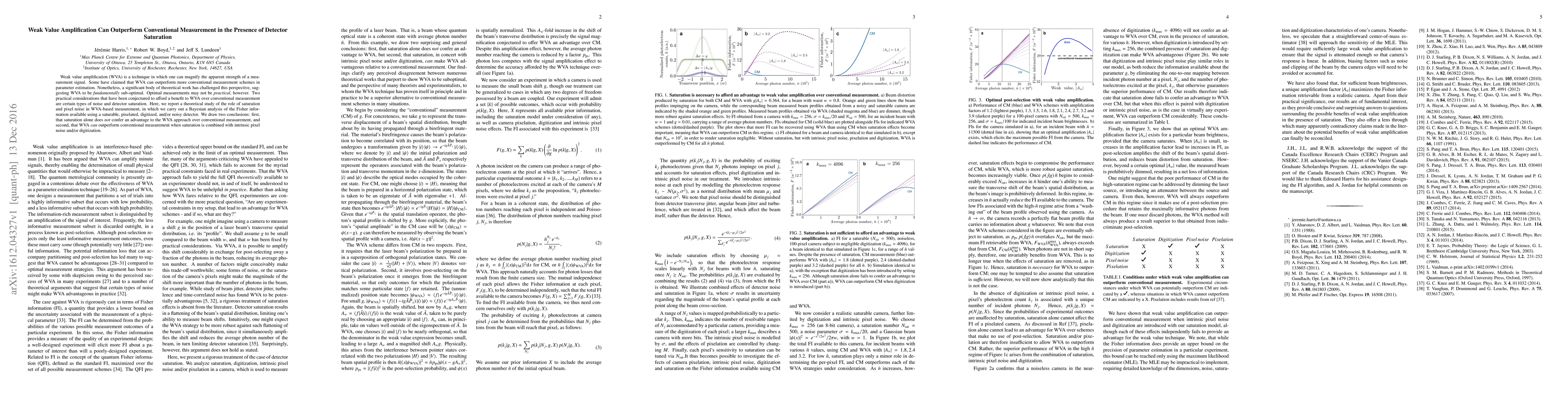 Weak value amplification outperforms conventional measurement in certain conditions, such as detector saturation combined with pixel noise and digitization, but not when saturation alone is present.