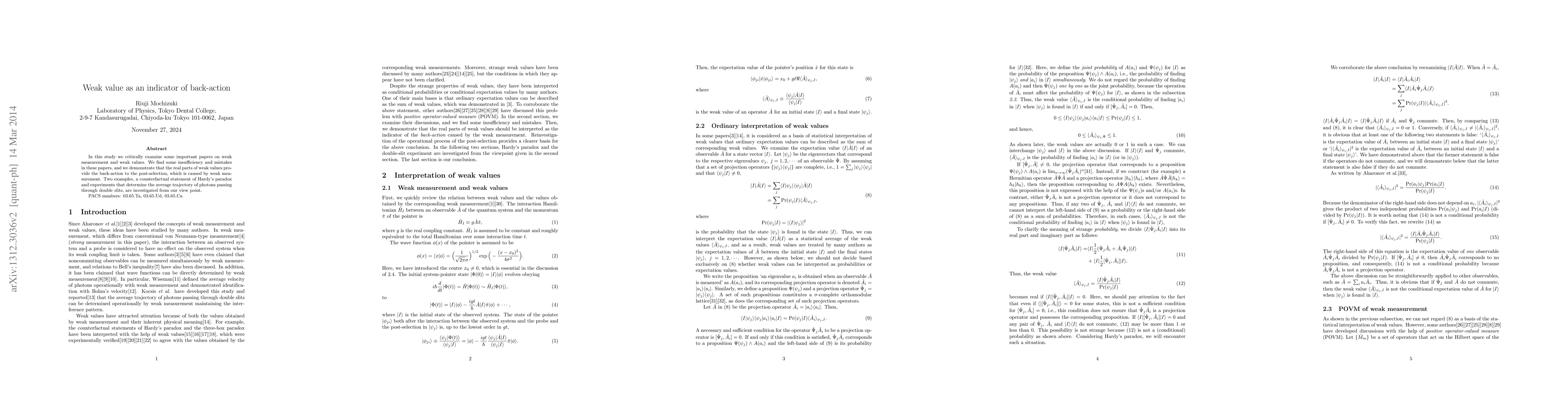 This study examines weak measurement and its effects on back-action, finding that real parts of weak values cause post-selection back-action in experiments, including a double slit photon trajectory investigation.