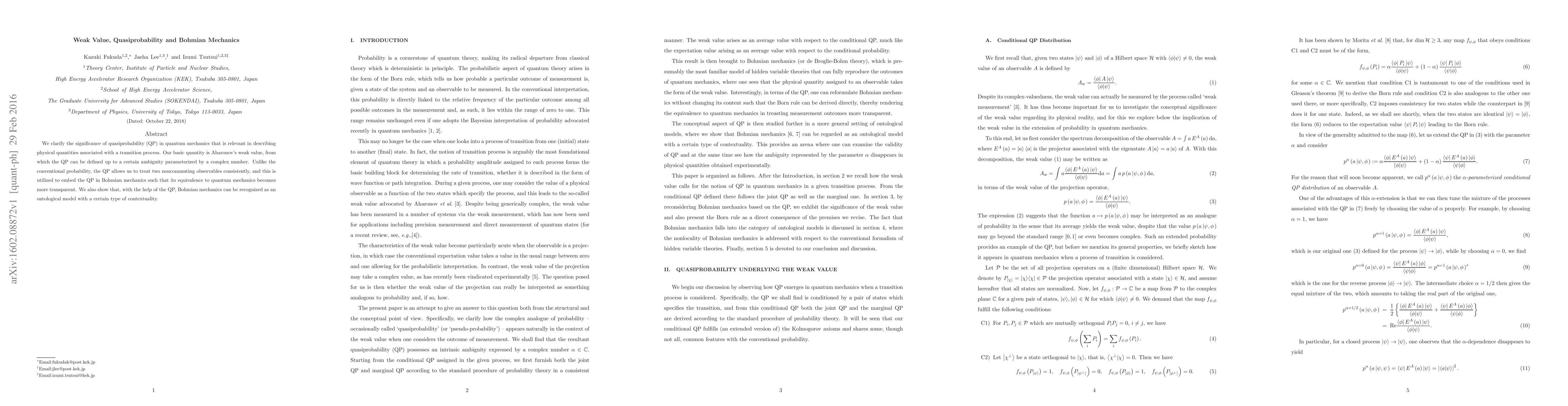 This paper explores the role of quasiprobability in quantum mechanics, particularly through Aharonov's weak value, to treat noncommuting observables consistently. It embeds quasiprobability within Bohmian mechanics, demonstrating its equivalence to quantum mechanics and revealing Bohmian mechanics as an ontological model with contextuality.