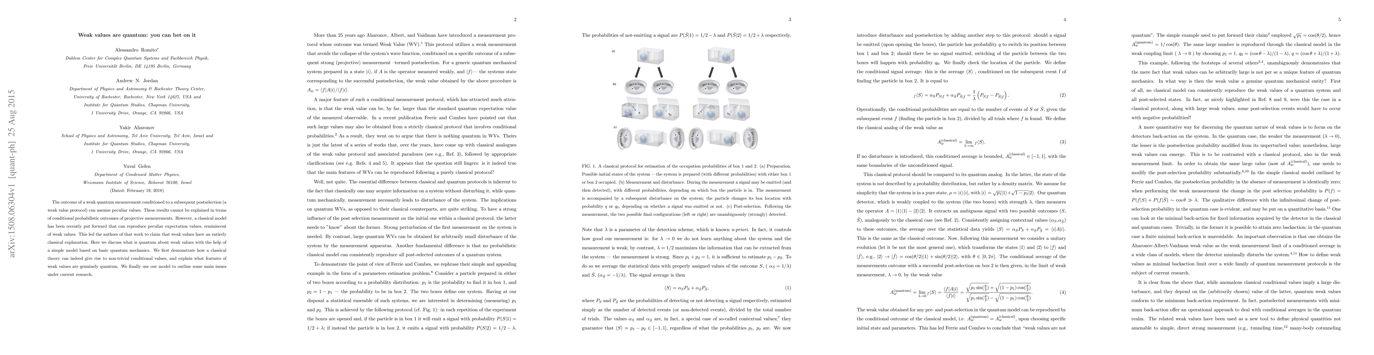 The outcome of a weak quantum measurement conditioned to a subsequent postselection (a weak value protocol) can assume peculiar values. These results cannot be explained in terms of conditional probabilistic outcomes of projective measurements. However, a classical model has been recently put forward that can reproduce peculiar expectation values, reminiscent of weak values. This led the authors of that work to claim that weak values have an entirely classical explanation. Here we discuss what is quantum about weak values with the help of a simple model based on basic quantum mechanics. We first demonstrate how a classical theory can indeed give rise to non-trivial conditional values, and explain what features of weak values are genuinely quantum. We finally use our model to outline some main issues under current research.