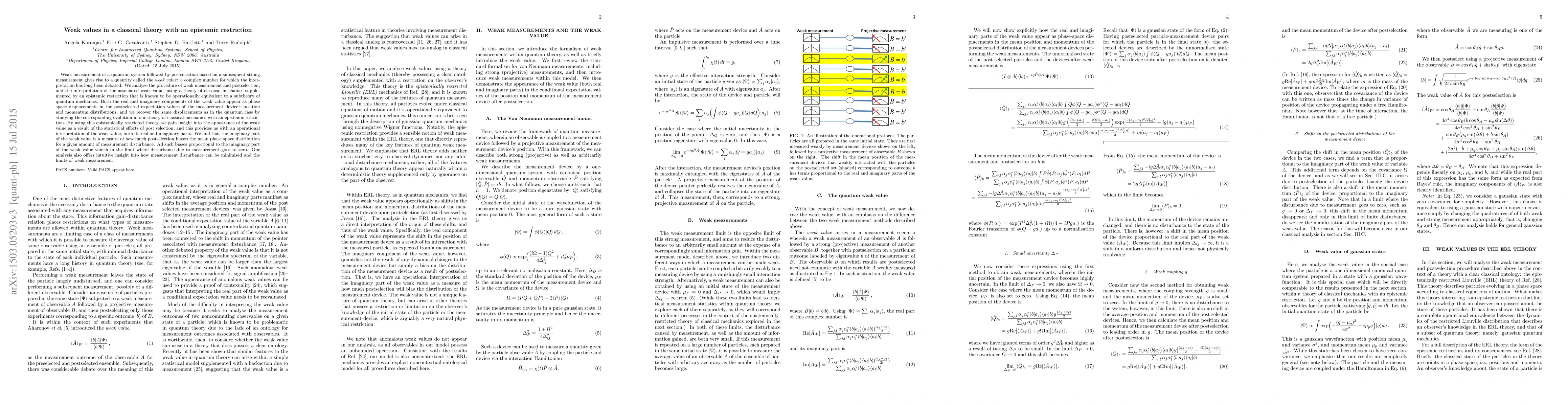 This paper explores the concept of weak values using a classical theory with an epistemic restriction, demonstrating that weak values arise from statistical effects of postselection. It finds that the imaginary part of the weak value measures postselection bias, which diminishes as measurement disturbance decreases.