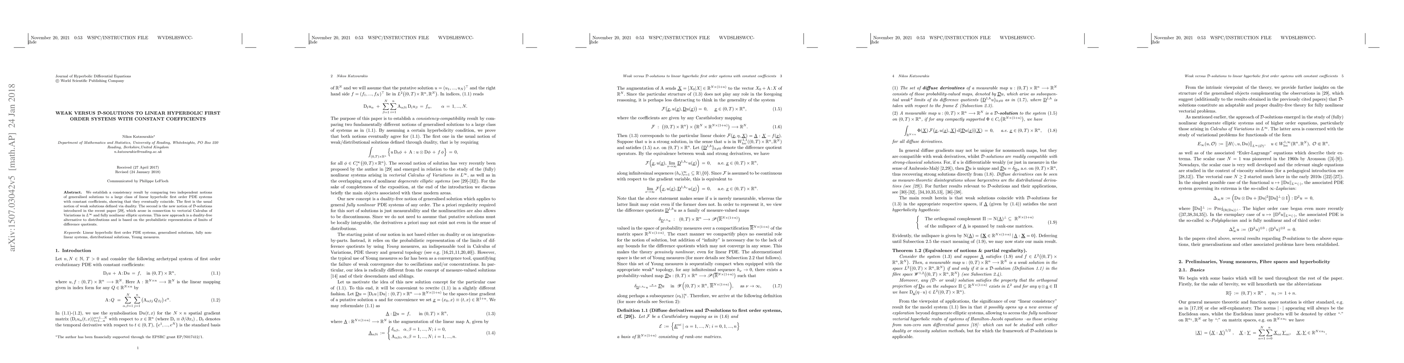 Researchers establish consistency between two notions of generalized solutions to linear hyperbolic PDE systems with constant coefficients, showing they eventually coincide in a duality-free approach.