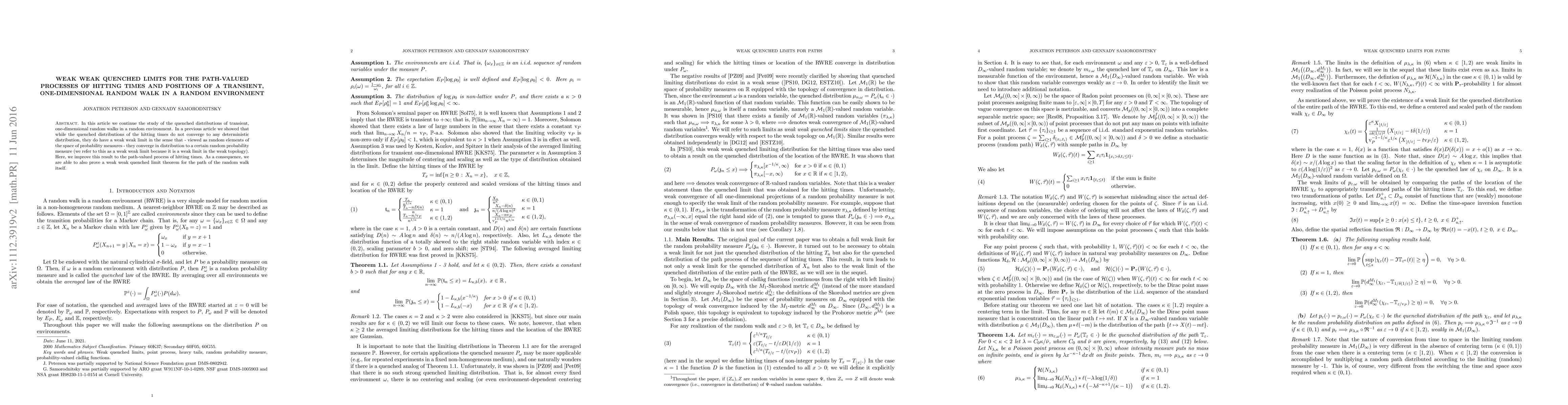 In this article we continue the study of the quenched distributions of transient, one-dimensional random walks in a random environment. In a previous article we showed that while the quenched distributions of the hitting times do not converge to any deterministic distribution, they do have a weak weak limit in the sense that - viewed as random elements of the space of probability measures - they converge in distribution to a certain random probability measure (we refer to this as a weak weak limit because it is a weak limit in the weak topology). Here, we improve this result to the path-valued process of hitting times. As a consequence, we are able to also prove a weak weak quenched limit theorem for the path of the random walk itself.