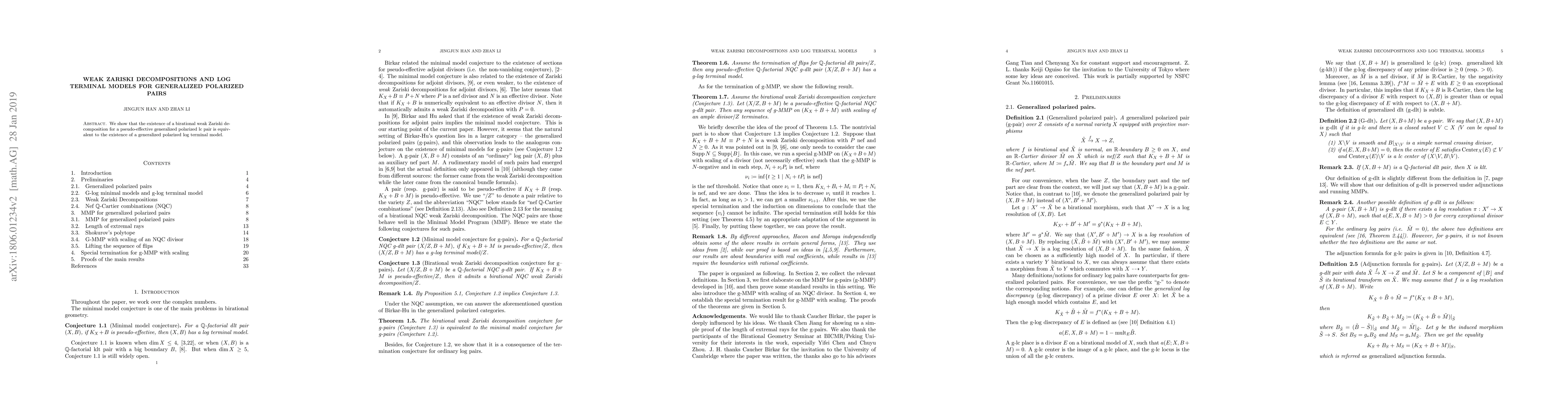 Summary: This paper establishes the equivalence between the existence of a birational weak Zariski decomposition for pseudo-effective generalized polarized lc pairs and the existence of a generalized polarized log terminal model. The findings provide new insights into the structure of such pairs.