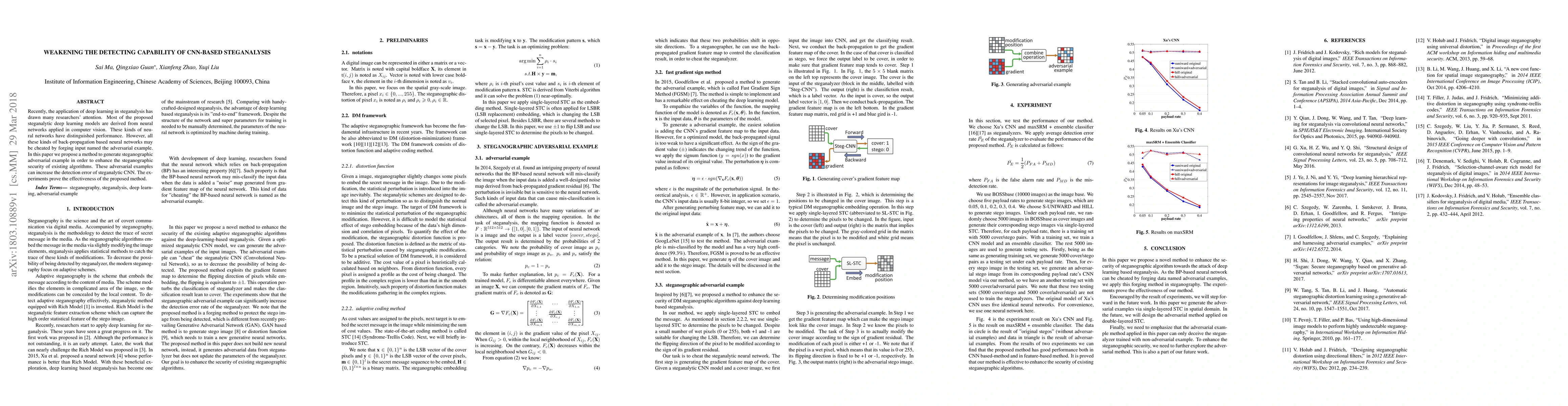 This paper proposes a method to generate adversarial examples for steganography to enhance security against CNN-based steganalysis. The generated examples increase the detection error of steganalytic CNNs, demonstrating the method's effectiveness.