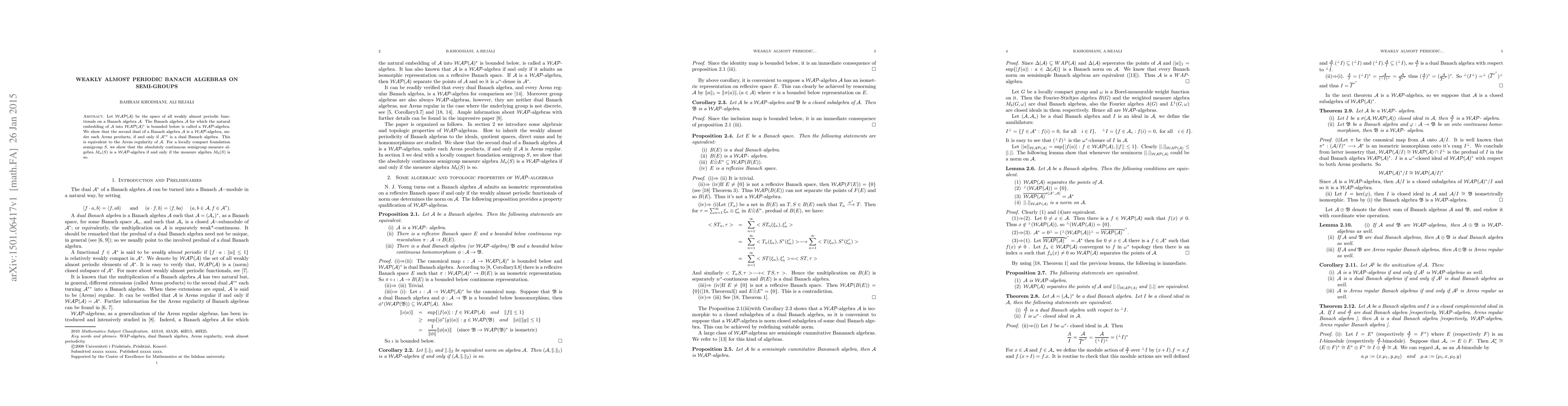 The paper explores weakly almost periodic Banach algebras on semigroups, defining WAP-algebras and examining their properties under various conditions.