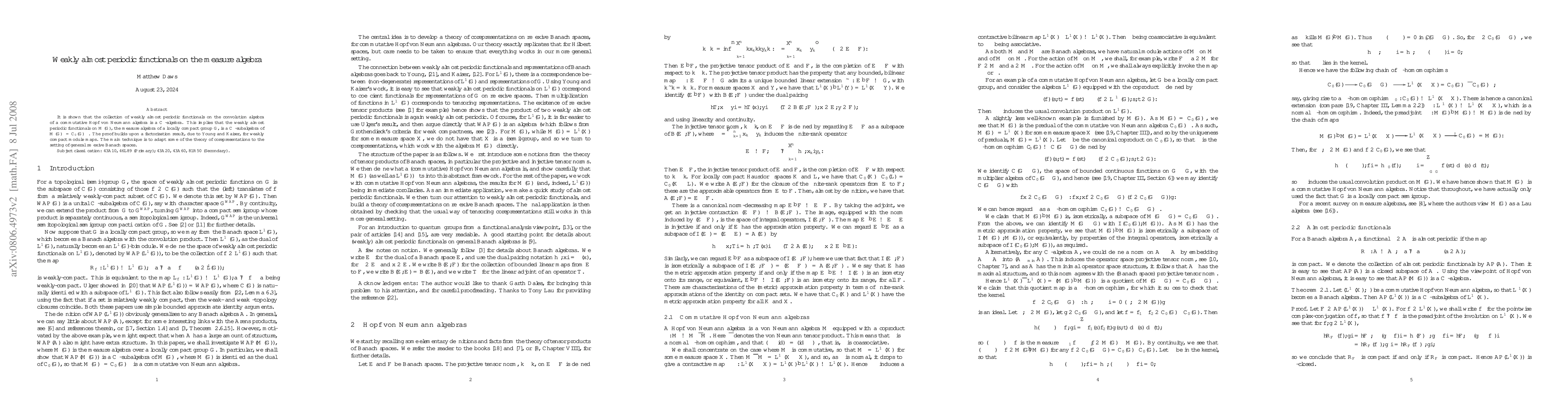 It is shown that the collection of weakly almost periodic functionals on the convolution algebra of a commutative Hopf von Neumann algebra is a C$^*$-algebra. This implies that the weakly almost periodic functionals on $M(G)$, the measure algebra of a locally compact group $G$, is a C$^*$-subalgebra of $M(G)^* = C_0(G)^{**}$. The proof builds upon a factorisation result, due to Young and Kaiser, for weakly compact module maps. The main technique is to adapt some of the theory of corepresentations to the setting of general reflexive Banach spaces.