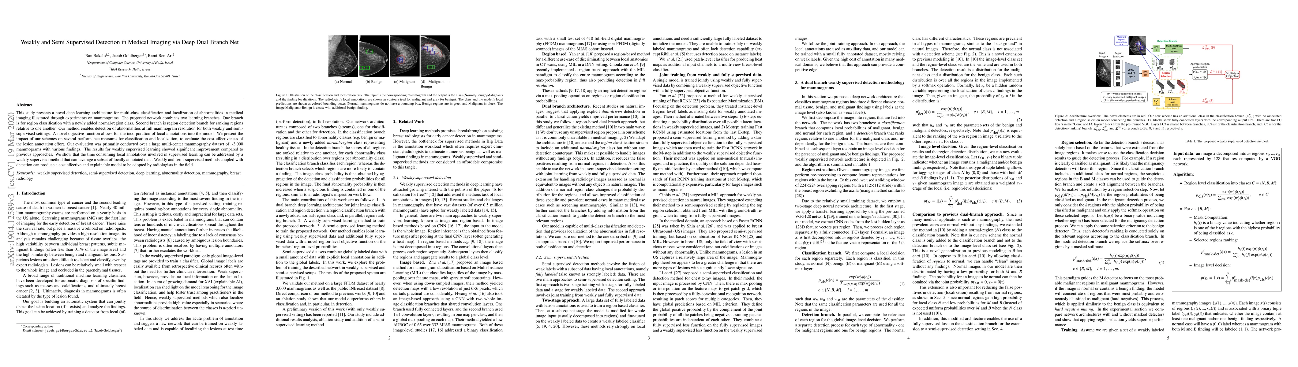 This paper introduces a dual-branch deep learning network for detecting and classifying abnormalities in mammograms under weakly and semi-supervised settings, demonstrating significant improvements over previous methods and showing the potential for cost-effective, explainable models in medical imaging.