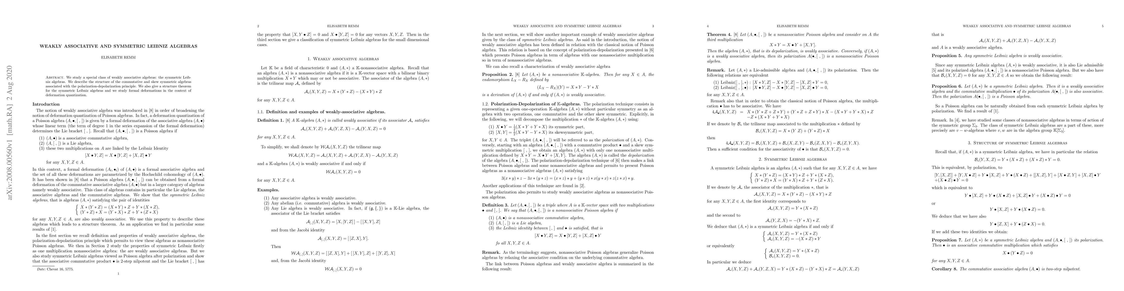 This paper explores symmetric Leibniz algebras, a subclass of weakly associative algebras, and presents a structure theorem for them. It also investigates commutative and skew-symmetric algebras through the polarization-depolarization principle and examines formal deformations relevant to deformation quantization.