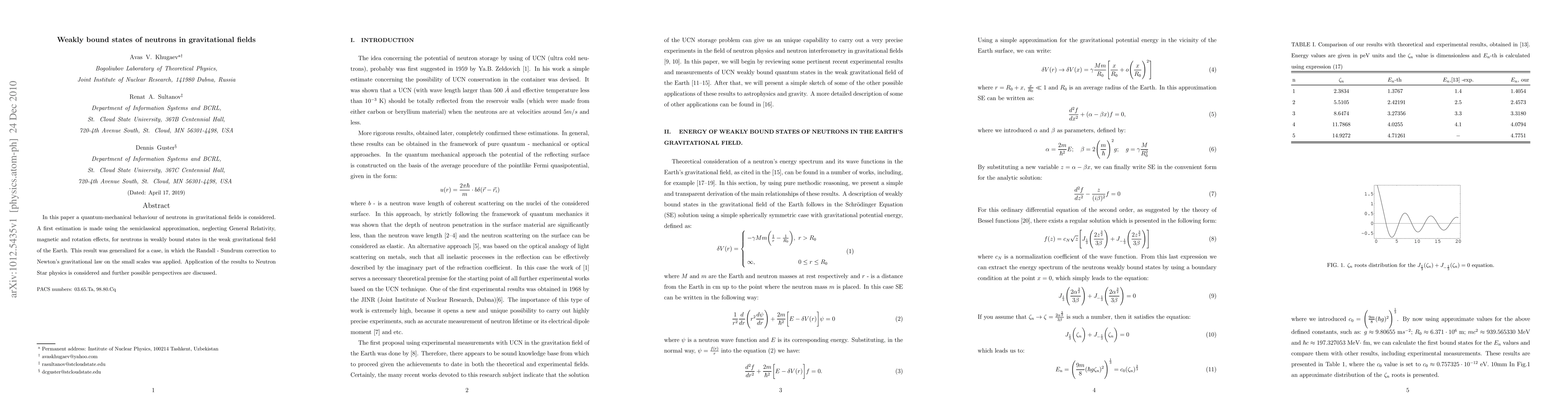 In this paper a quantum-mechanical behaviour of neutrons in gravitational fields is considered. A first estimation is made using the semiclassical approximation, neglecting General Relativity, magnetic and rotation effects, for neutrons in weakly bound states in the weak gravitational field of the Earth. This result was generalized for a case, in which the Randall - Sundrum correction to Newton's gravitational law on the small scales was applied. Application of the results to Neutron Star physics is considered and further possible perspectives are discussed.