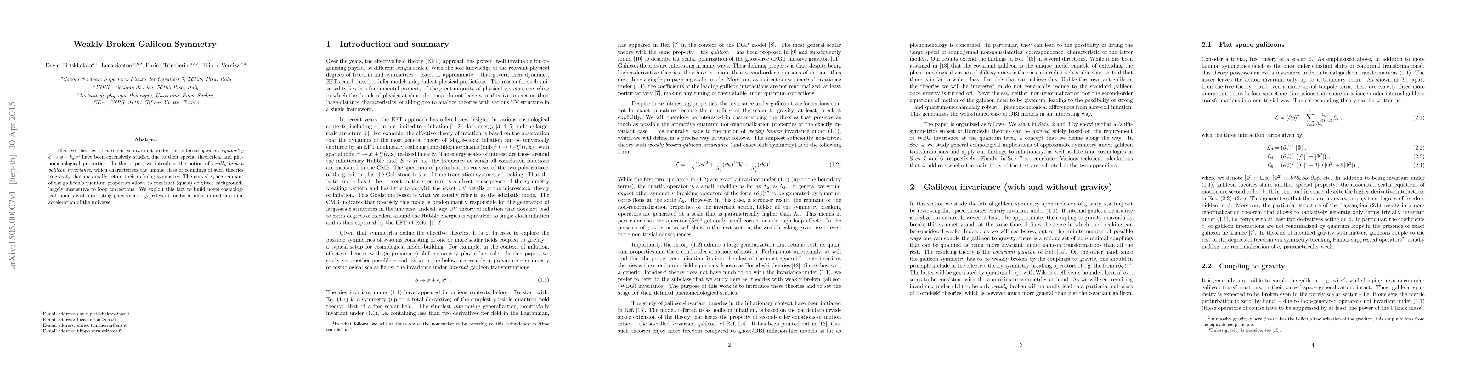 This research introduces 'weakly broken galileon symmetry,' which allows for unique couplings of scalar theories to gravity, preserving their defining properties. It leads to novel cosmological models for both inflation and late-time universe acceleration, largely unaffected by loop corrections.