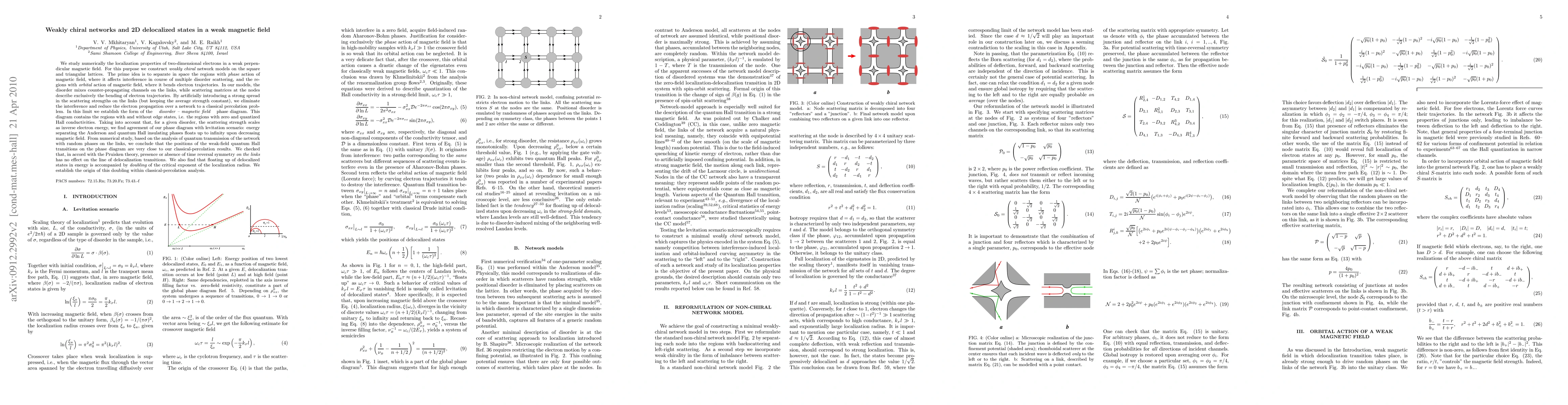 We study the localization properties of two-dimensional electrons in a weak perpendicular magnetic field. For this purpose we construct weakly chiral network models on the square and triangular lattices, by separating in space the regions with phase action of magnetic field, where it affects interference in course of disorder scattering, and the regions with orbital action of magnetic field, where it bends electron trajectories. In our models, the disorder mixes counter-propagating channels on the links, while scattering at the nodes describes the bending of electron trajectories. By introducing a strong spread in the scattering strengths on the links, we eliminate the interference and reduce the electron propagation over a network to a percolation problem. In this limit we establish the form of the disorder vs. magnetic field phase diagram, which is in agreement with levitation scenario: energy separating the Anderson and quantum Hall insulating phases floats up to infinity upon decreasing magnetic field. From numerical study we conclude that the positions of the weak-field quantum Hall transitions on the phase diagram are very close to our percolation results. We checked that, in accord with the Pruisken's theory, presence or absence of time reversal symmetry has no effect on the line of delocalization transitions.