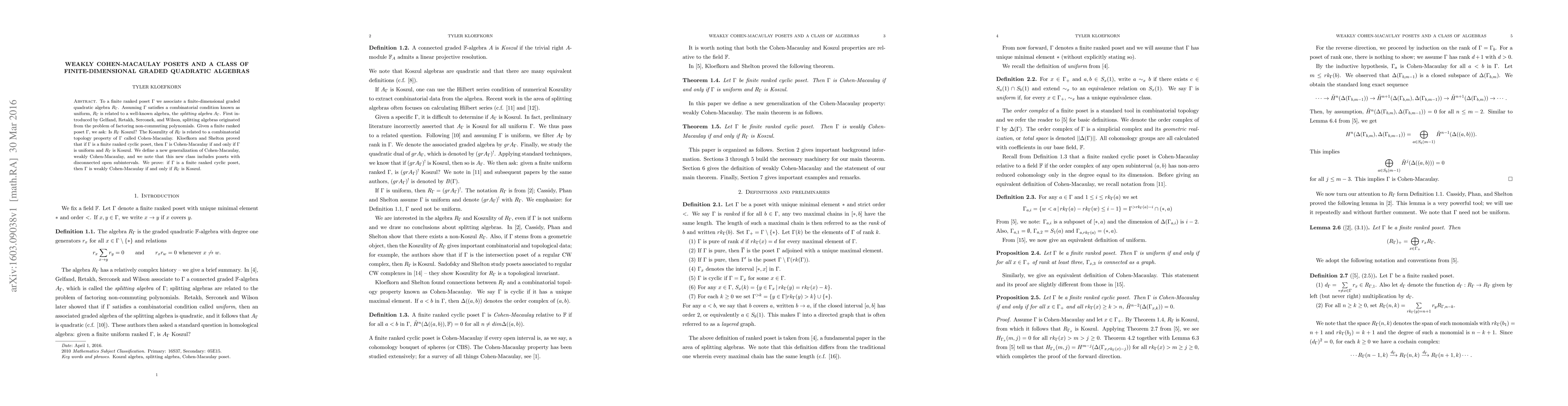To a finite ranked poset $\Gamma$ we associate a finite-dimensional graded quadratic algebra $R_\Gamma$. Assuming $\Gamma$ satisfies a combinatorial condition known as uniform, $R_{\Gamma}$ is related to a well-known algebra, the splitting algebra $A_{\Gamma}$. First introduced by Gelfand, Retakh, Serconek, and Wilson, splitting algebras originated from the problem of factoring non-commuting polynomials. Given a finite ranked poset $\Gamma$, we ask: Is $R_{\Gamma}$ Koszul? The Koszulity of $R_{\Gamma}$ is related to a combinatorial topology property of $\Gamma$ called Cohen-Macaulay. Kloefkorn and Shelton proved that if $\Gamma$ is a finite ranked cyclic poset, then $\Gamma$ is Cohen-Macaulay if and only if $\Gamma$ is uniform and $R_{\Gamma}$ is Koszul. We define a new generalization of Cohen-Macaulay, weakly Cohen-Macaulay, and we note that this new class includes posets with disconnected open subintervals. We prove: if $\Gamma$ is a finite ranked cyclic poset, then $\Gamma$ is weakly Cohen-Macaulay if and only if $R_{\Gamma}$ is Koszul.