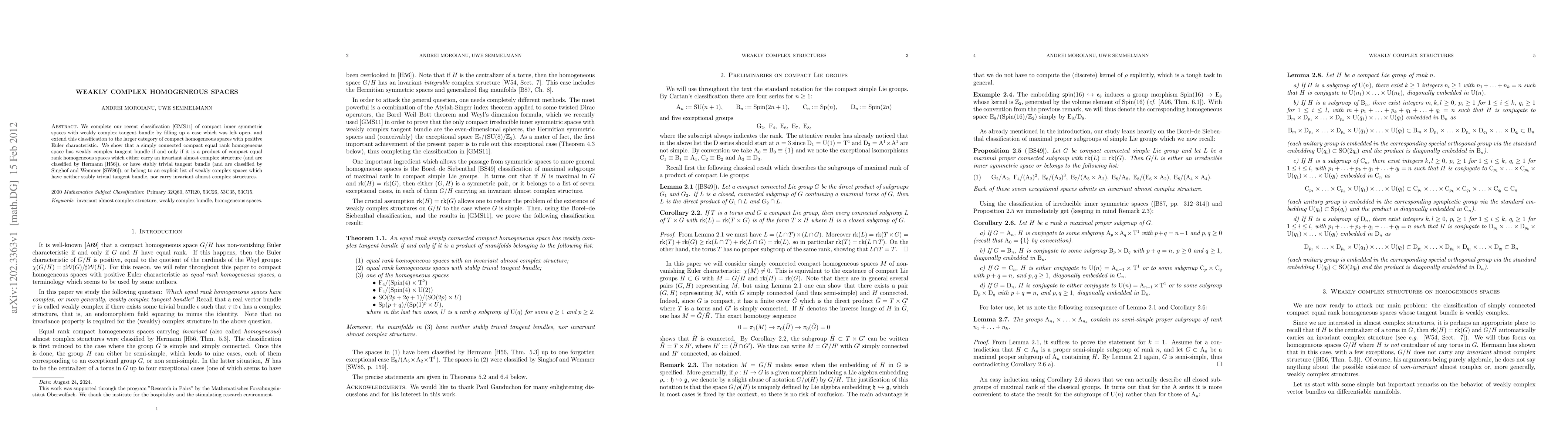 This paper completes the classification of compact homogeneous spaces with weakly complex tangent bundles by resolving an outstanding case and extending the classification to spaces with positive Euler characteristic. It concludes that such spaces are products of either spaces with invariant almost complex structures or those with stably trivial tangent bundles, or specific spaces listed in the paper.