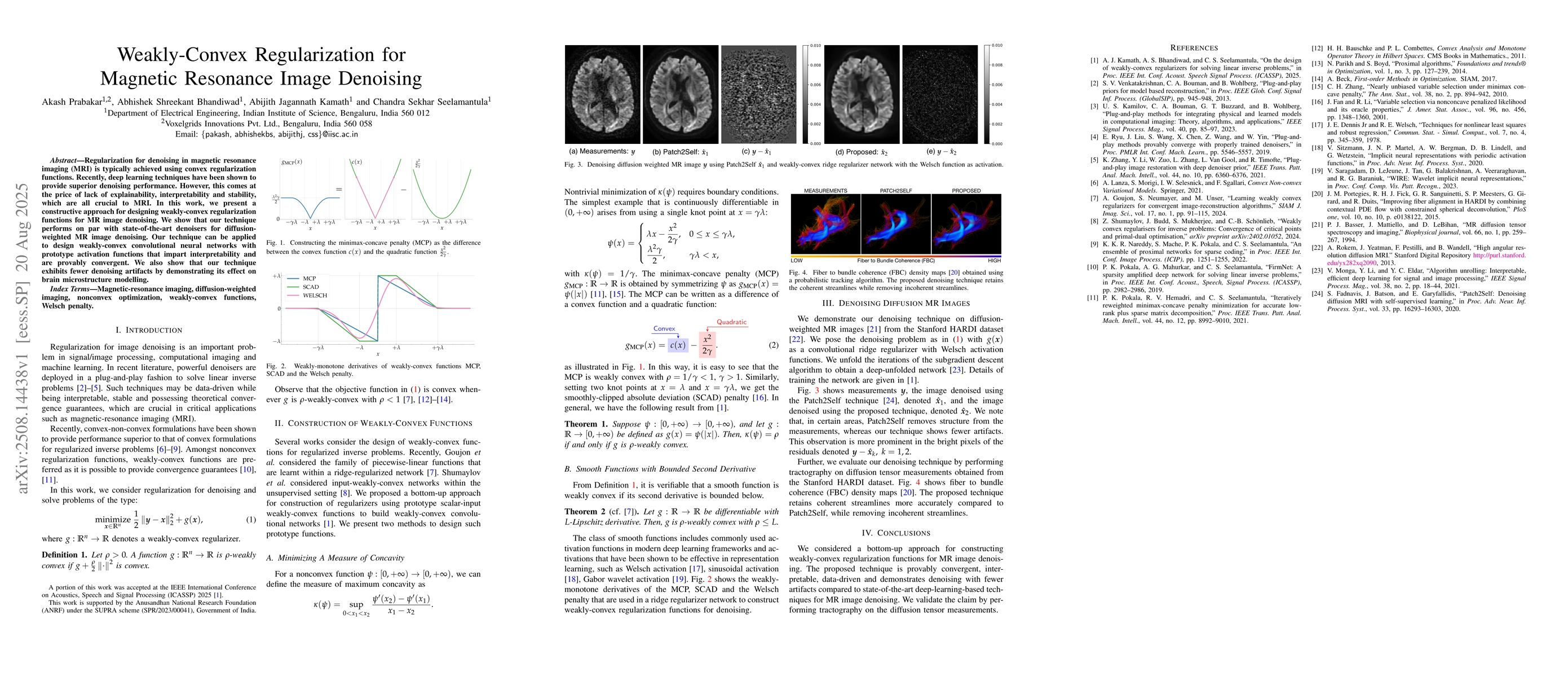 The research presents a constructive approach for designing weakly-convex regularization functions for MR image denoising, applicable to weakly-convex convolutional neural networks with prototype activation functions.