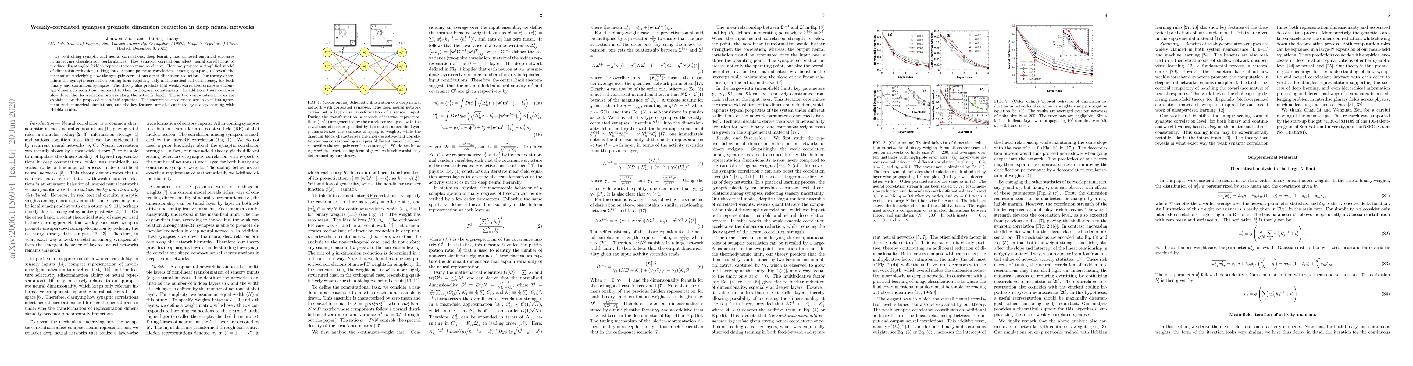 A new theory explains how weakly-correlated synapses in deep neural networks promote dimension reduction, improving classification performance, and slow down the decorrelation process along network depth.