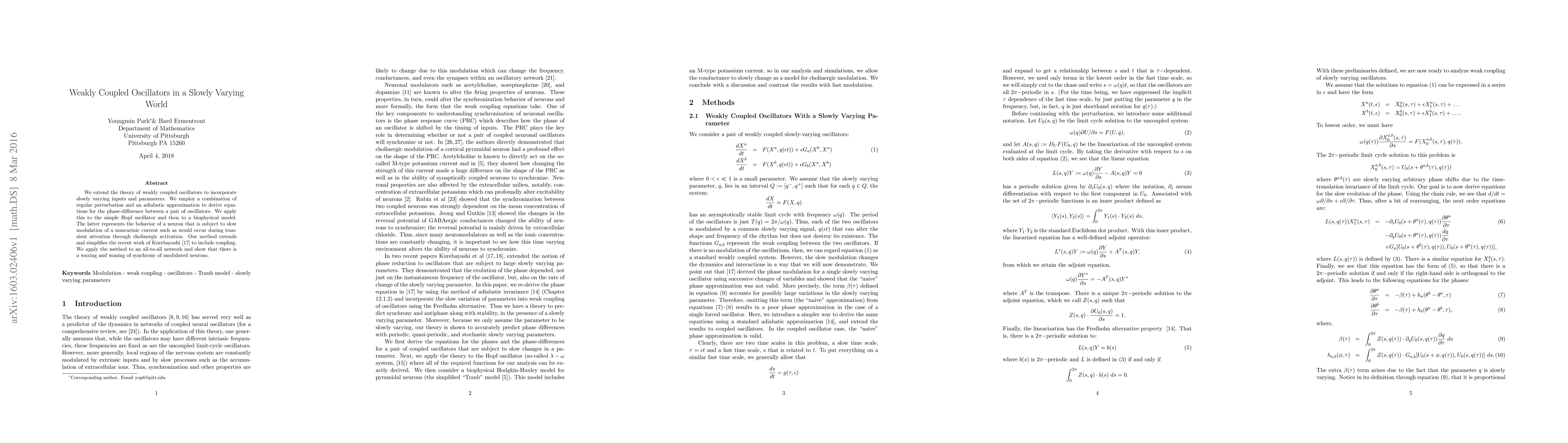Researchers developed a new method to study how oscillators with weak connections respond to slowly changing inputs and parameters, finding synchronized behavior in networks of modulated neurons.