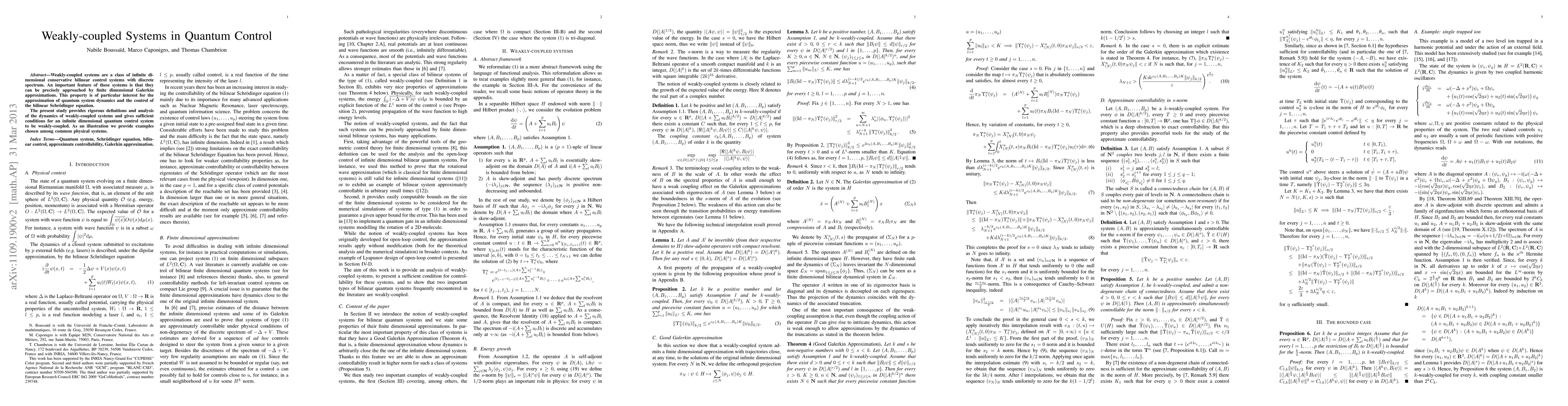 This paper analyzes weakly-coupled systems in quantum control, providing definitions and conditions for infinite-dimensional systems to be considered weakly-coupled, with examples from common physical systems.