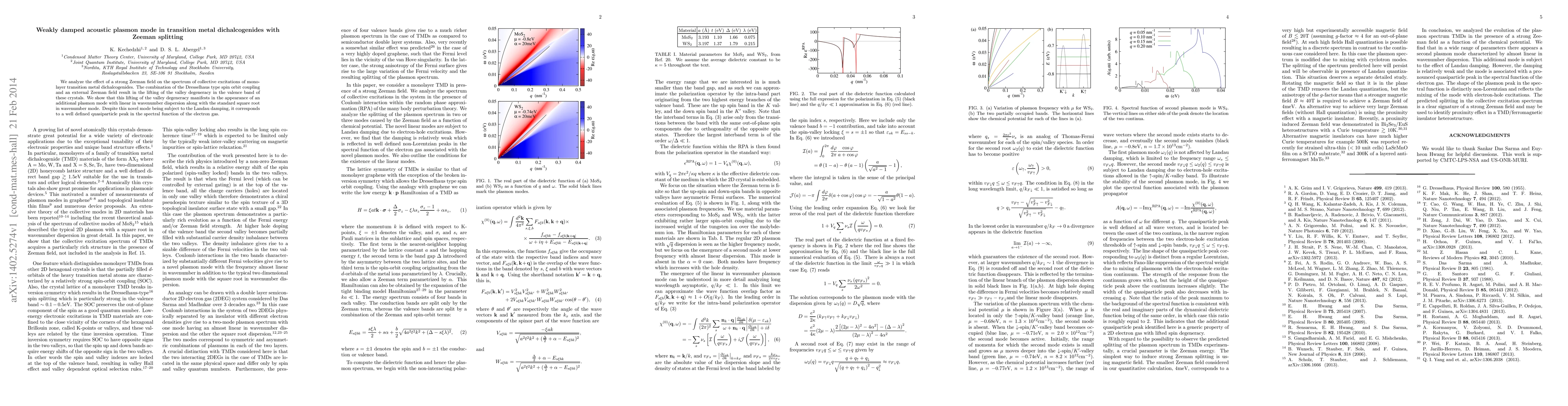 This paper investigates the impact of a strong Zeeman field on the collective excitations in monolayer transition metal dichalcogenides, revealing a new weakly damped acoustic plasmon mode due to the lifting of valley degeneracy. This novel mode exhibits linear dispersion and persists as a distinct quasiparticle peak despite Landau damping.