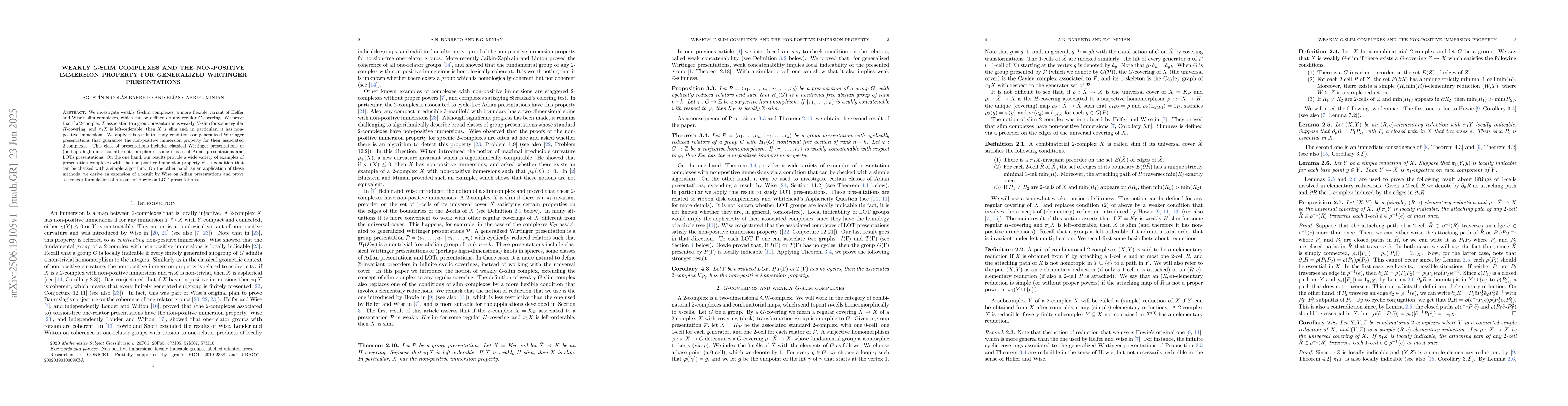 We investigate weakly $G$-slim complexes, a more flexible variant of Helfer and Wise's slim complexes, which can be defined on any regular $G$-covering. We prove that if a $2$-complex $X$ associated to a group presentation is weakly $H$-slim for some regular $H$-covering, and $\pi_1X$ is left-orderable, then $X$ is slim and, in particular, it has non-positive immersions. We apply this result to study conditions on generalized Wirtinger presentations that guarantee the non-positive immersion property for their associated $2$-complexes. This class of presentations includes classical Wirtinger presentations of (perhaps high-dimensional) knots in spheres, some classes of Adian presentations and LOTs presentations. On the one hand, our results provide a wide variety of examples of presentation complexes with the non-positive immersion property via a condition that can be checked with a simple algorithm. On the other hand, as an application of these methods, we derive an extension of a result by Wise on Adian presentations and prove a stronger formulation of a result of Howie on LOT presentations.