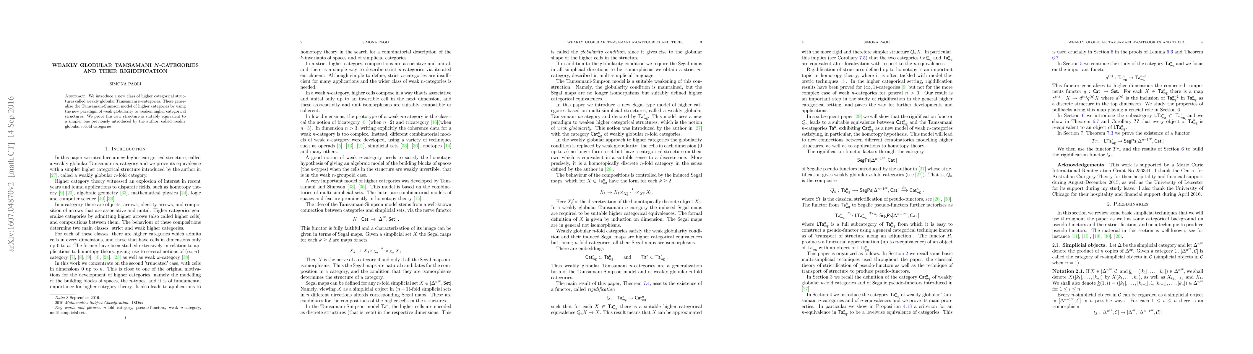 This paper introduces weakly globular Tamsamani n-categories, a new generalization of higher categorical structures, and demonstrates their equivalence to weakly globular n-fold categories. This advancement provides a more flexible framework for studying higher categories.