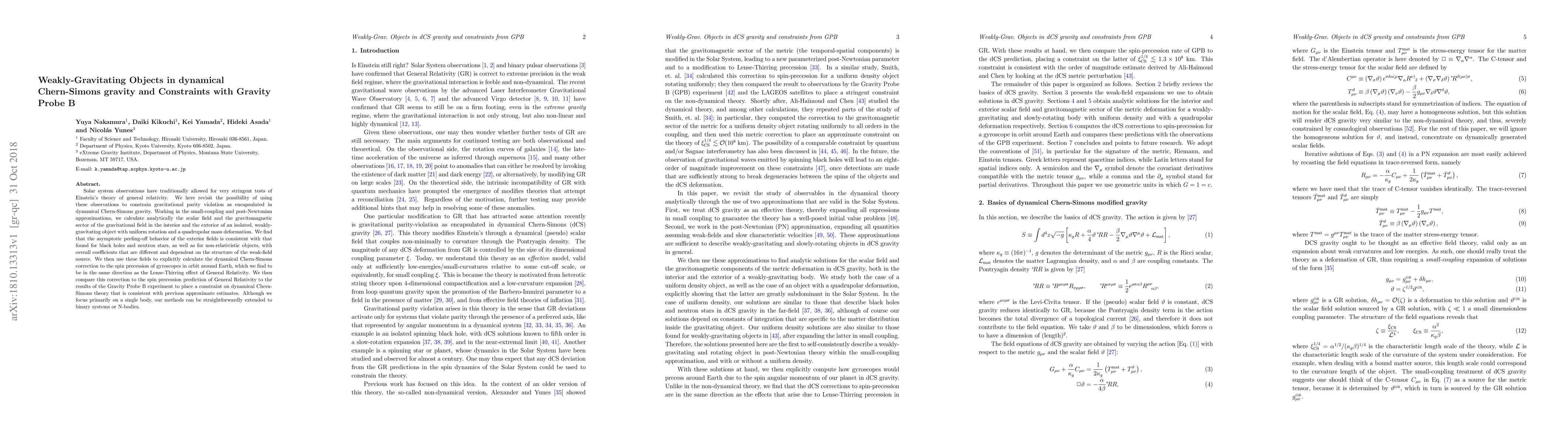 This paper investigates gravitational parity violation in dynamical Chern-Simons gravity using solar system observations, specifically analyzing the scalar field and gravitomagnetic effects around rotating, weakly-gravitating objects. It finds consistent asymptotic behavior for these fields and uses Gravity Probe B data to constrain the theory, aligning with previous estimates.